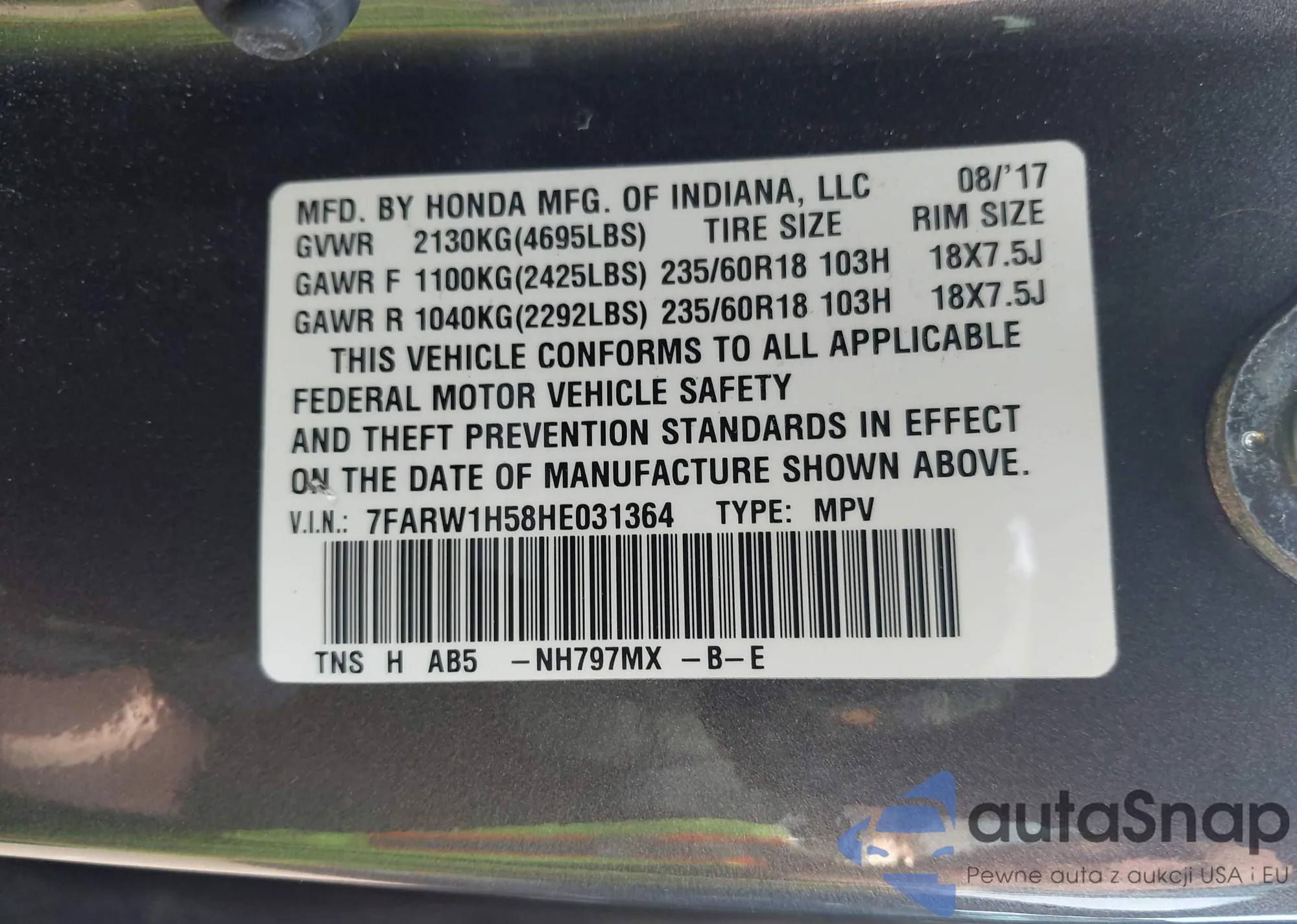• VIN 7FARW1H58HE031364