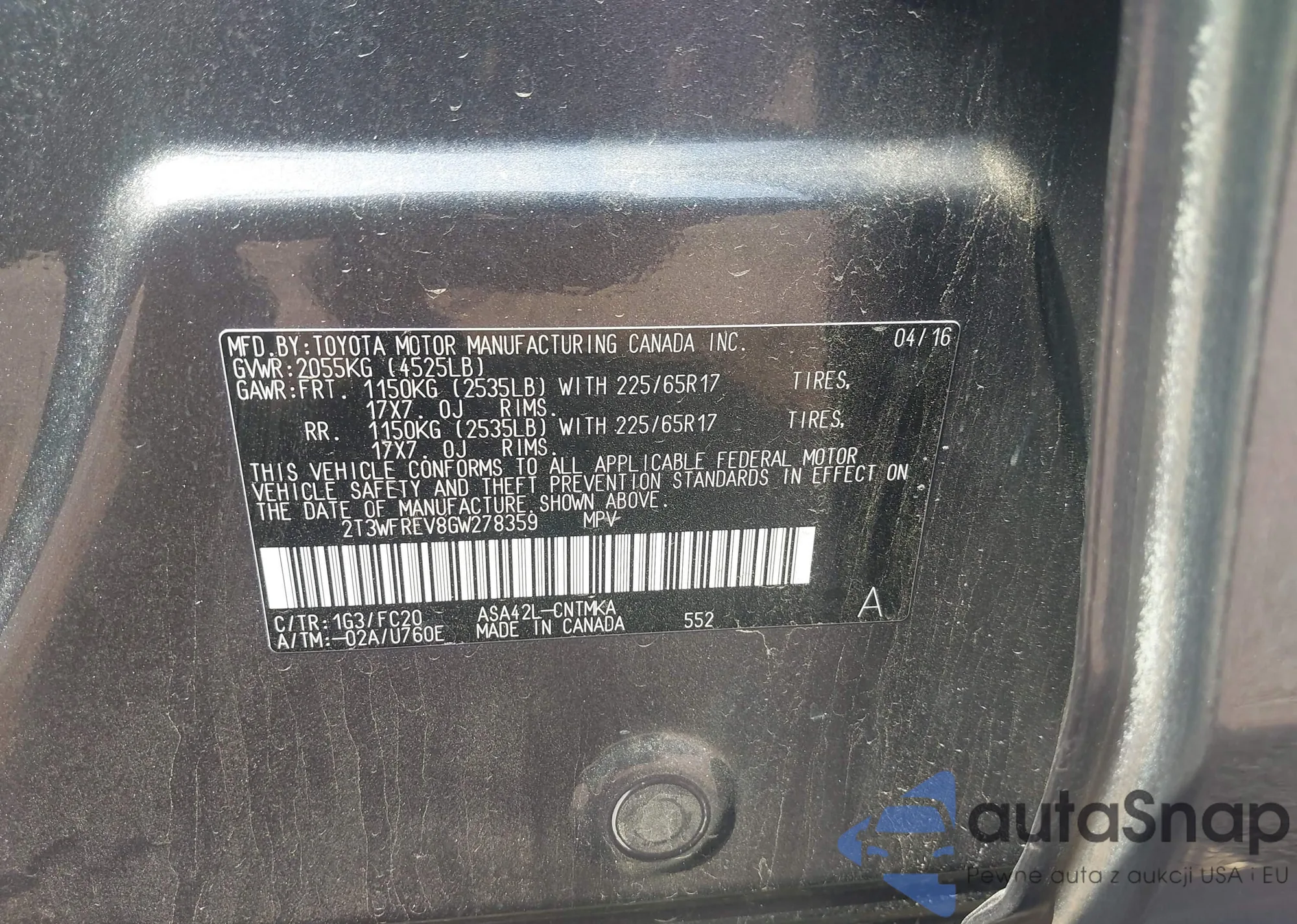 • VIN 2T3WFREV8GW278359