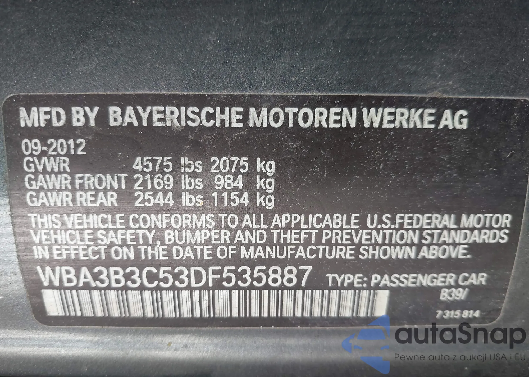 • VIN WBA3B3C53DF535887