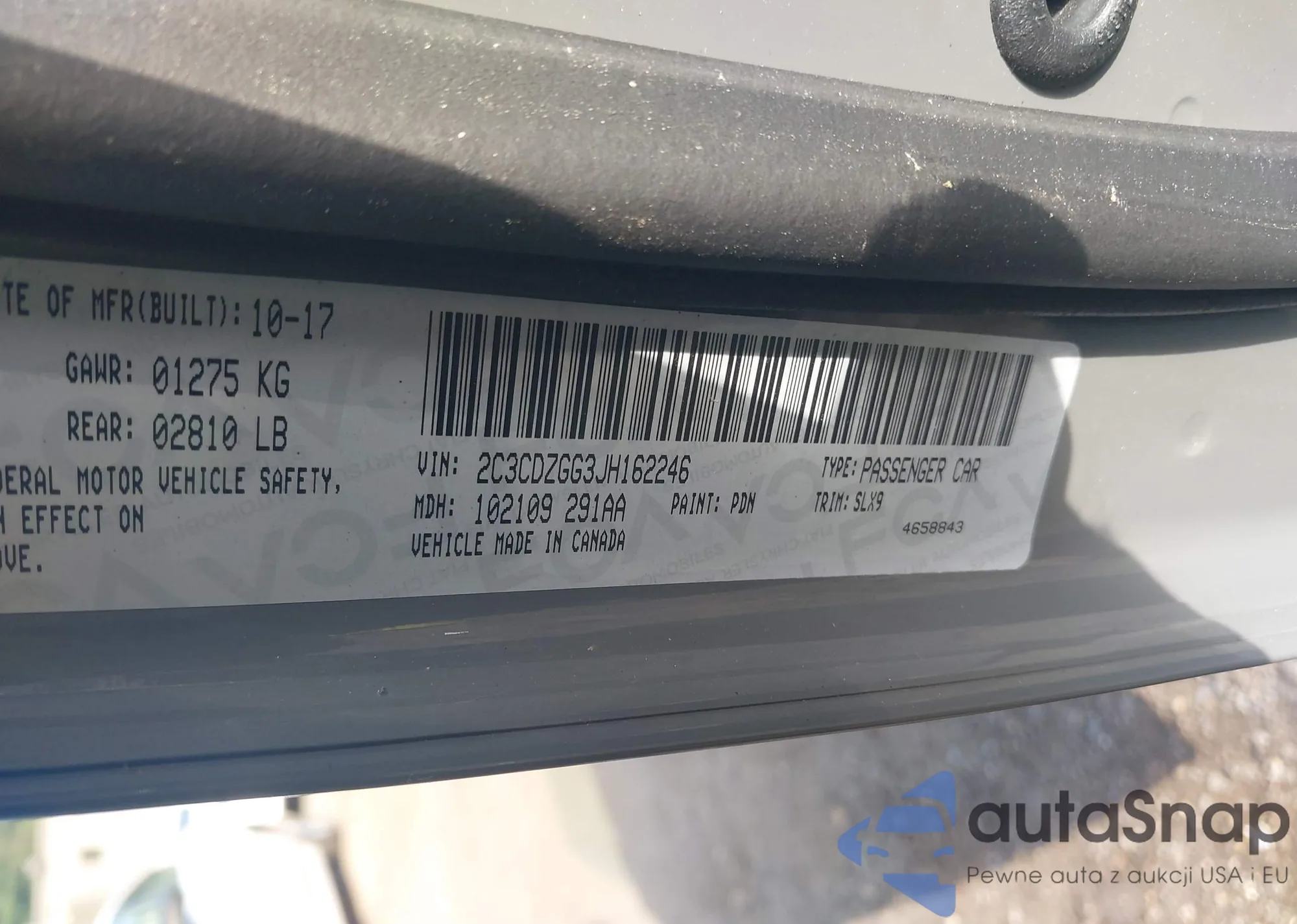 LOT: 43271972 VIN: ZACCJBAB0HPE70900