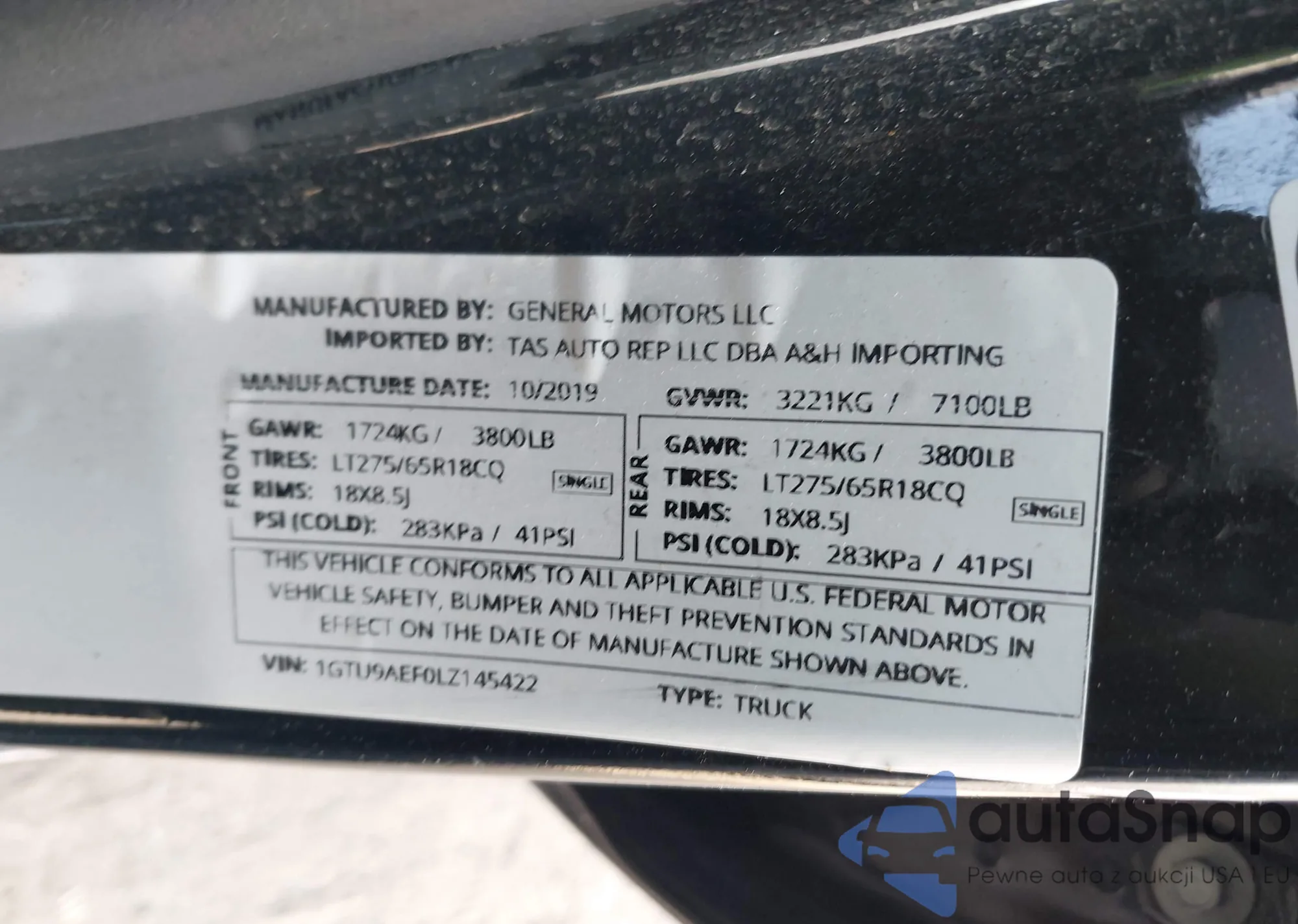 LOT: 42941328 VIN: 1GTU9AEF0LZ145422