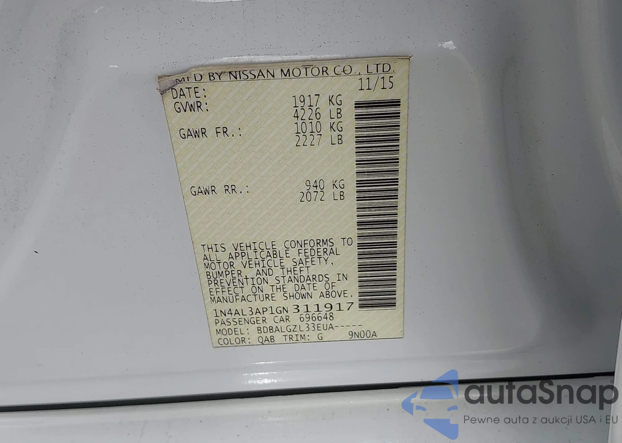 • VIN 1N4AL3AP1GN311917