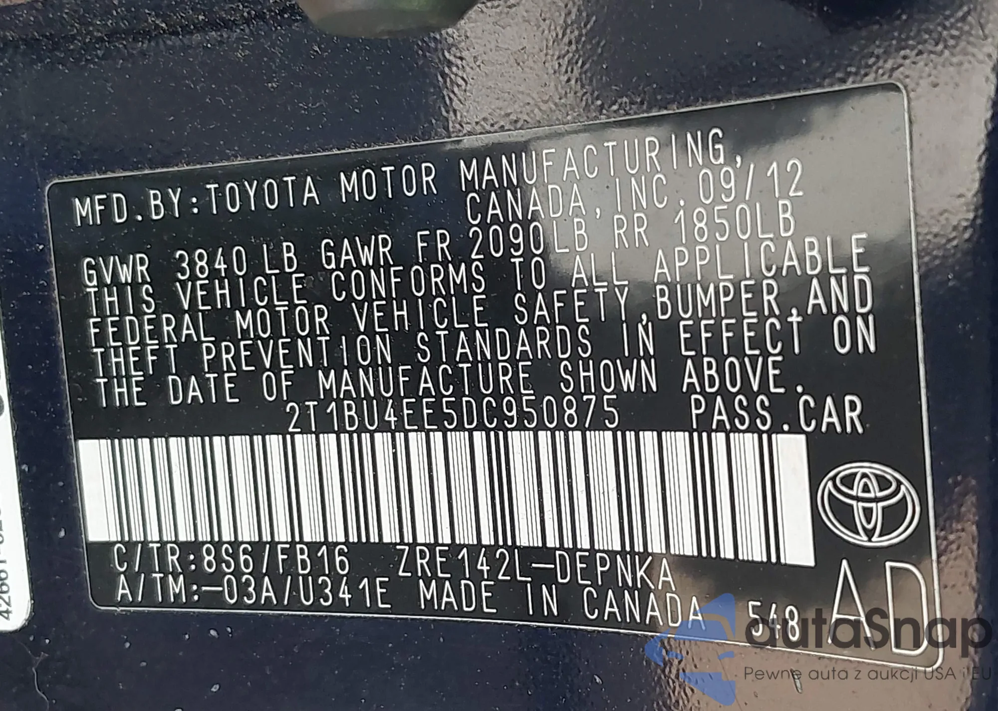 • VIN 2T1BU4EE5DC950875
