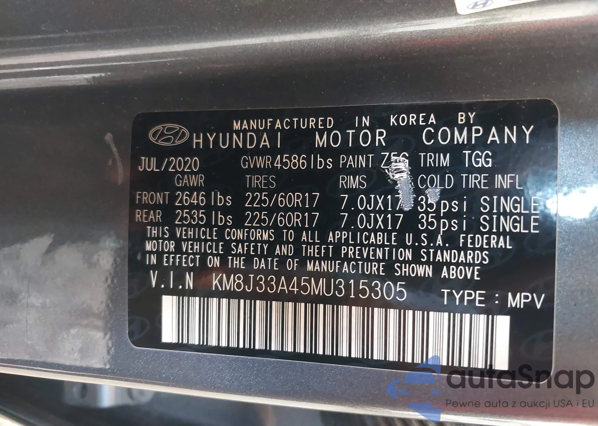 LOT: 42719176 VIN: KM8J33A45MU315305