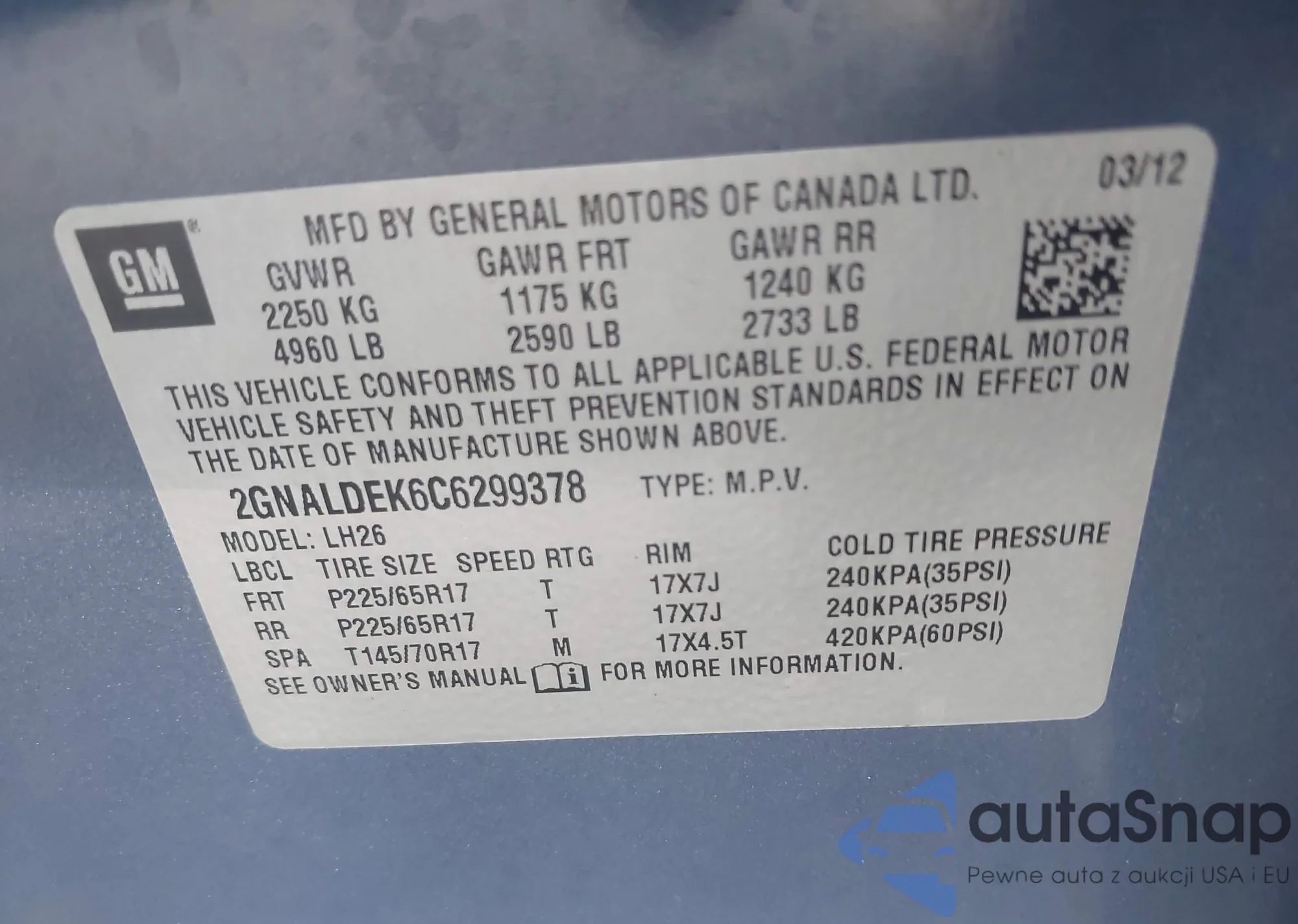 LOT: 42812127 VIN: 2GNALDEK6C6299378