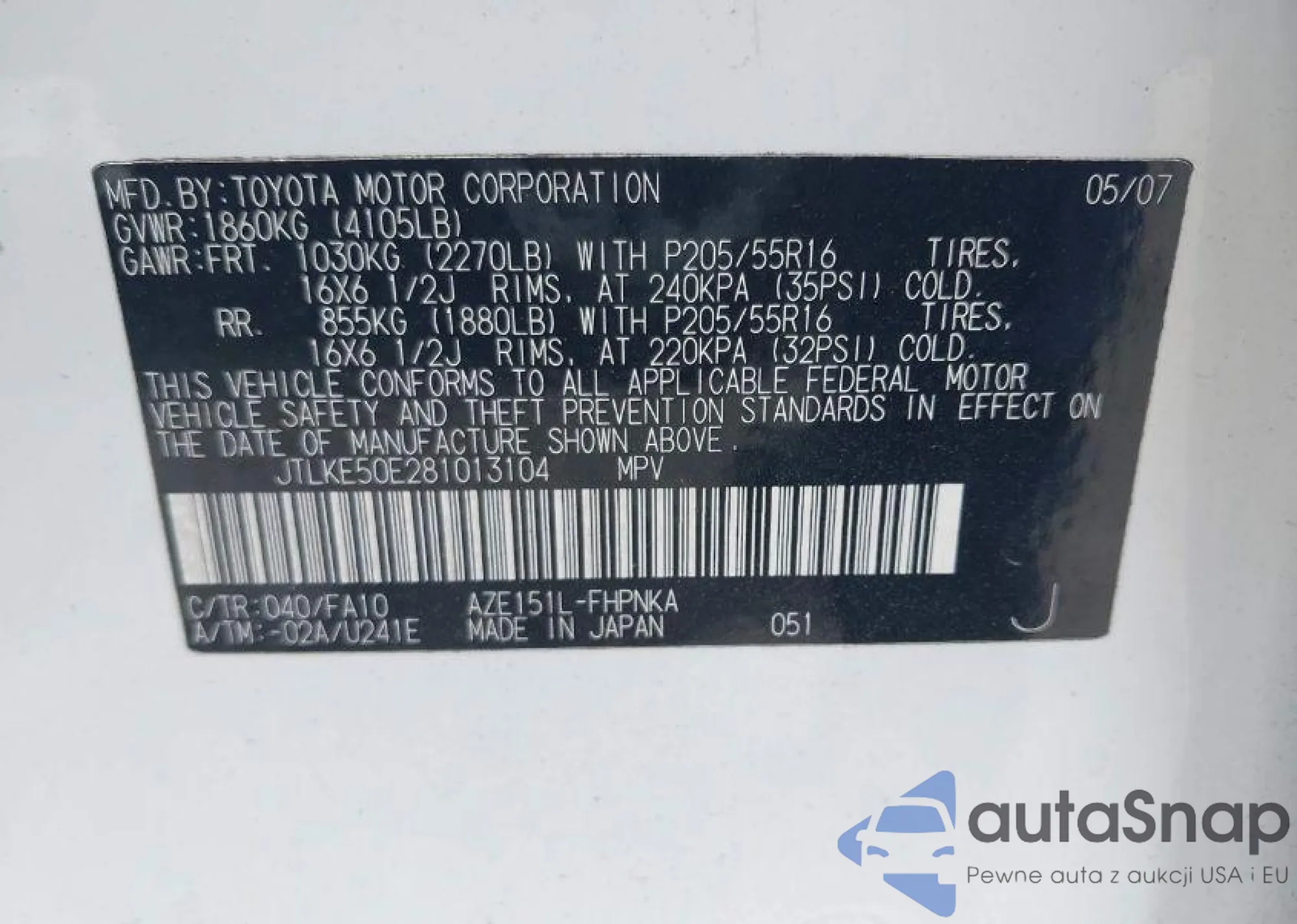 LOT: 41429853 VIN: JTLKE50E281013104