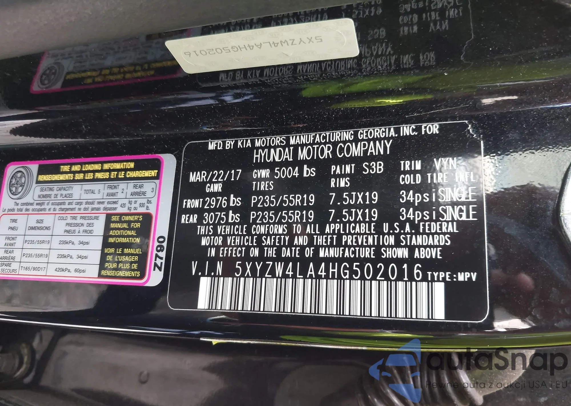 • VIN 5XYZW4LA4HG502016