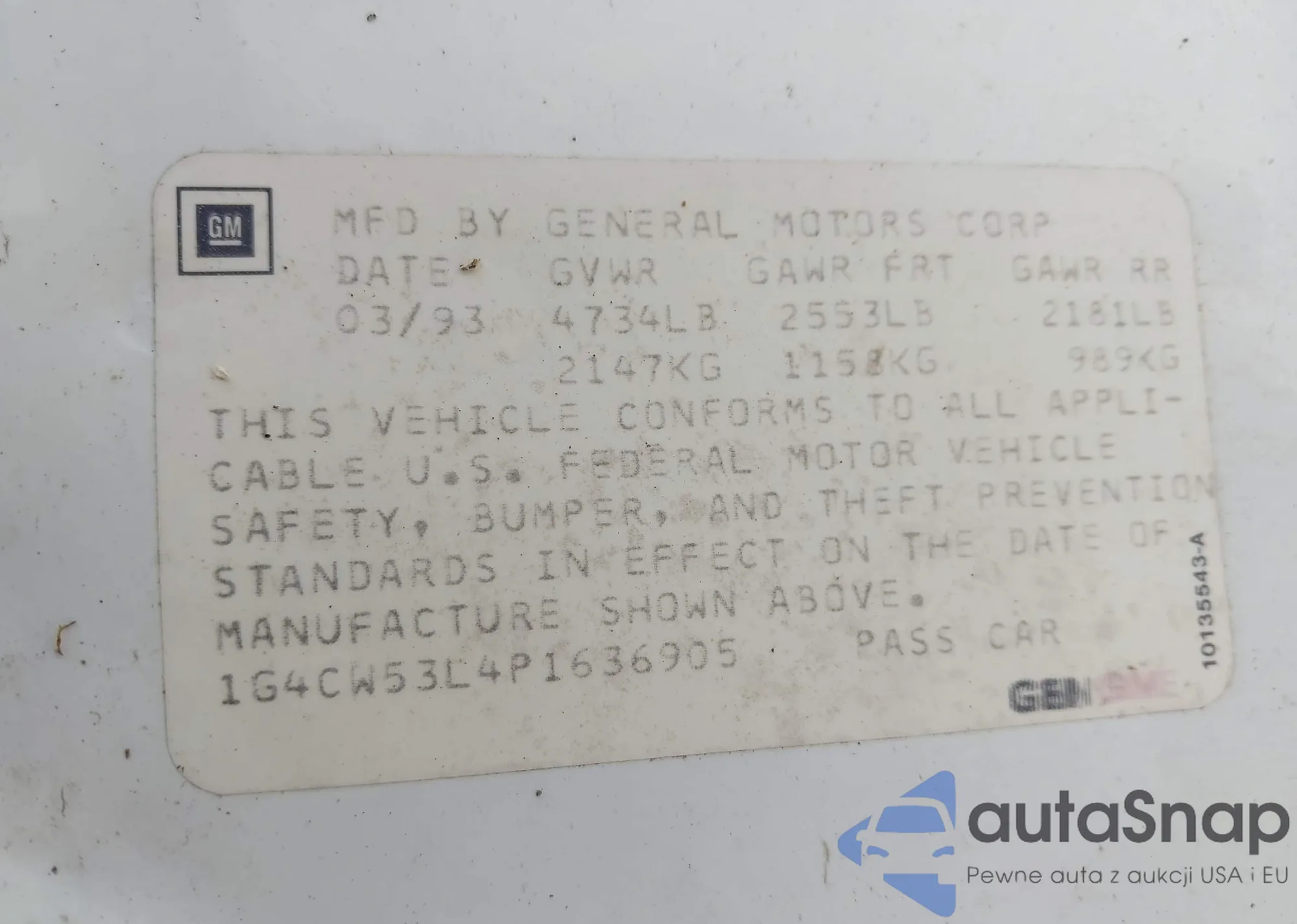 • VIN 1G4CW53L4P1636905