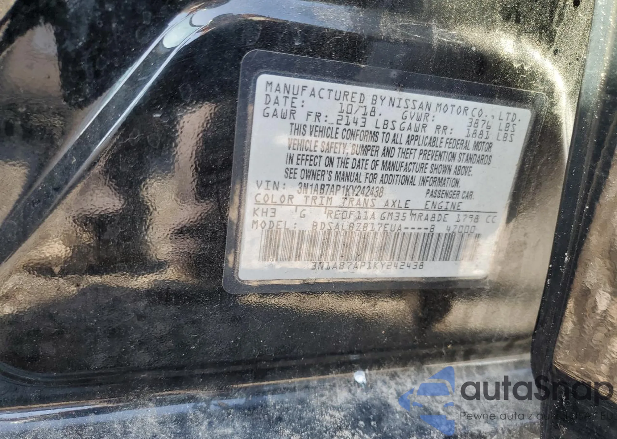 • VIN 3N1AB7AP1KY242438