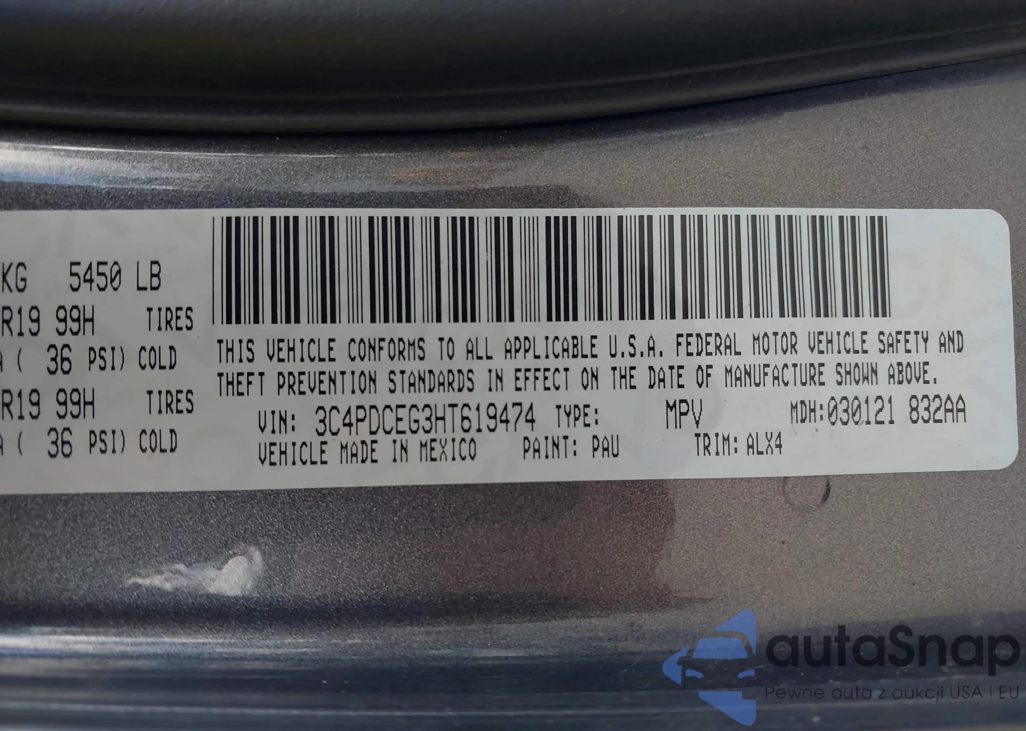 • VIN 3C4PDCEG3HT619474