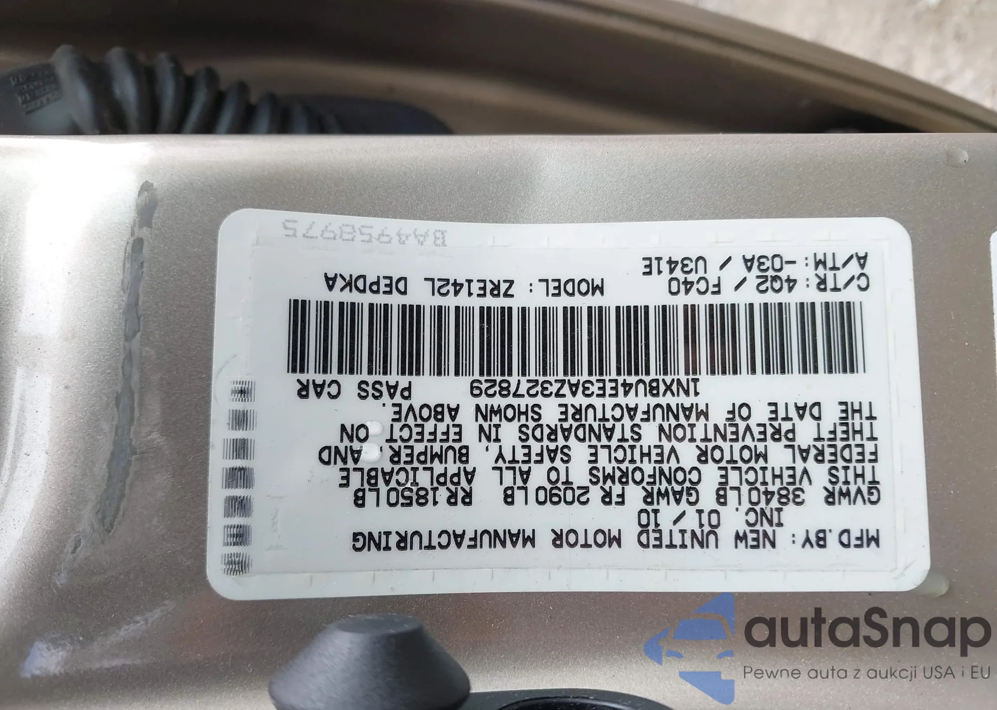 • VIN 1NXBU4EE3AZ327829