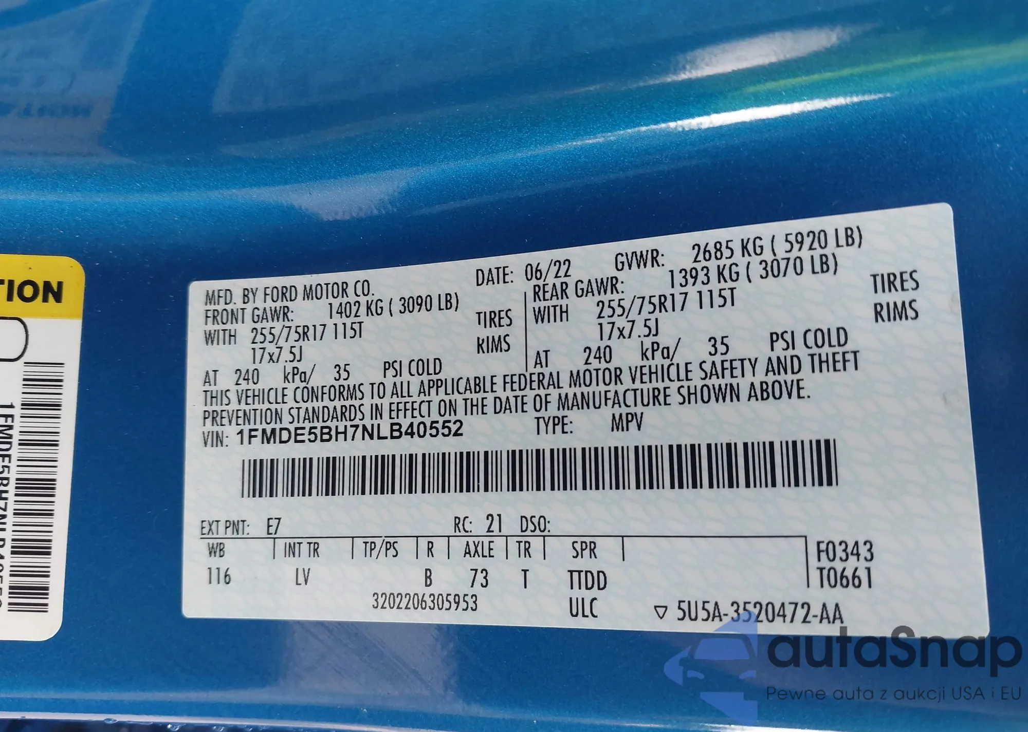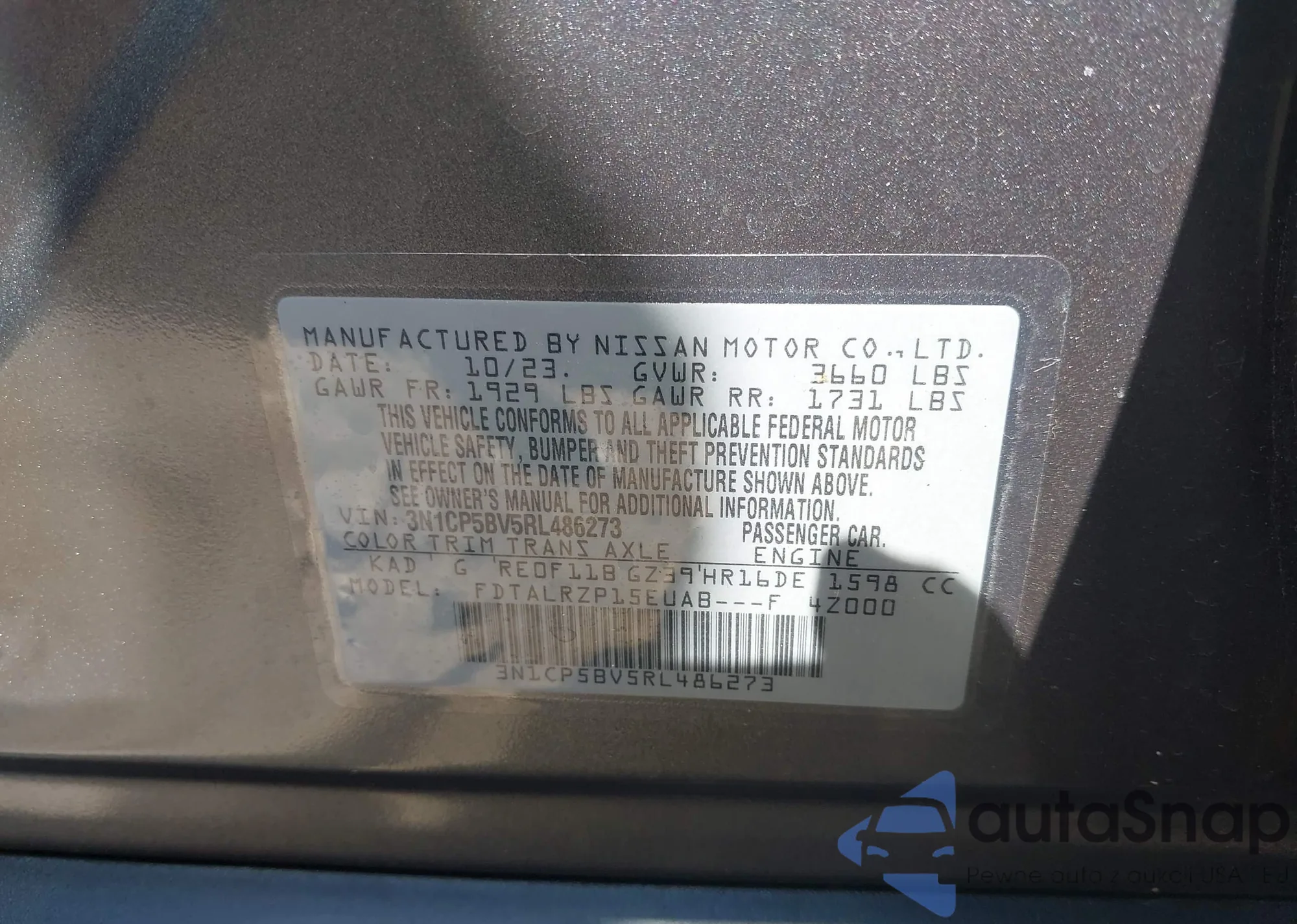 • VIN 2HGFE1F94NH315623