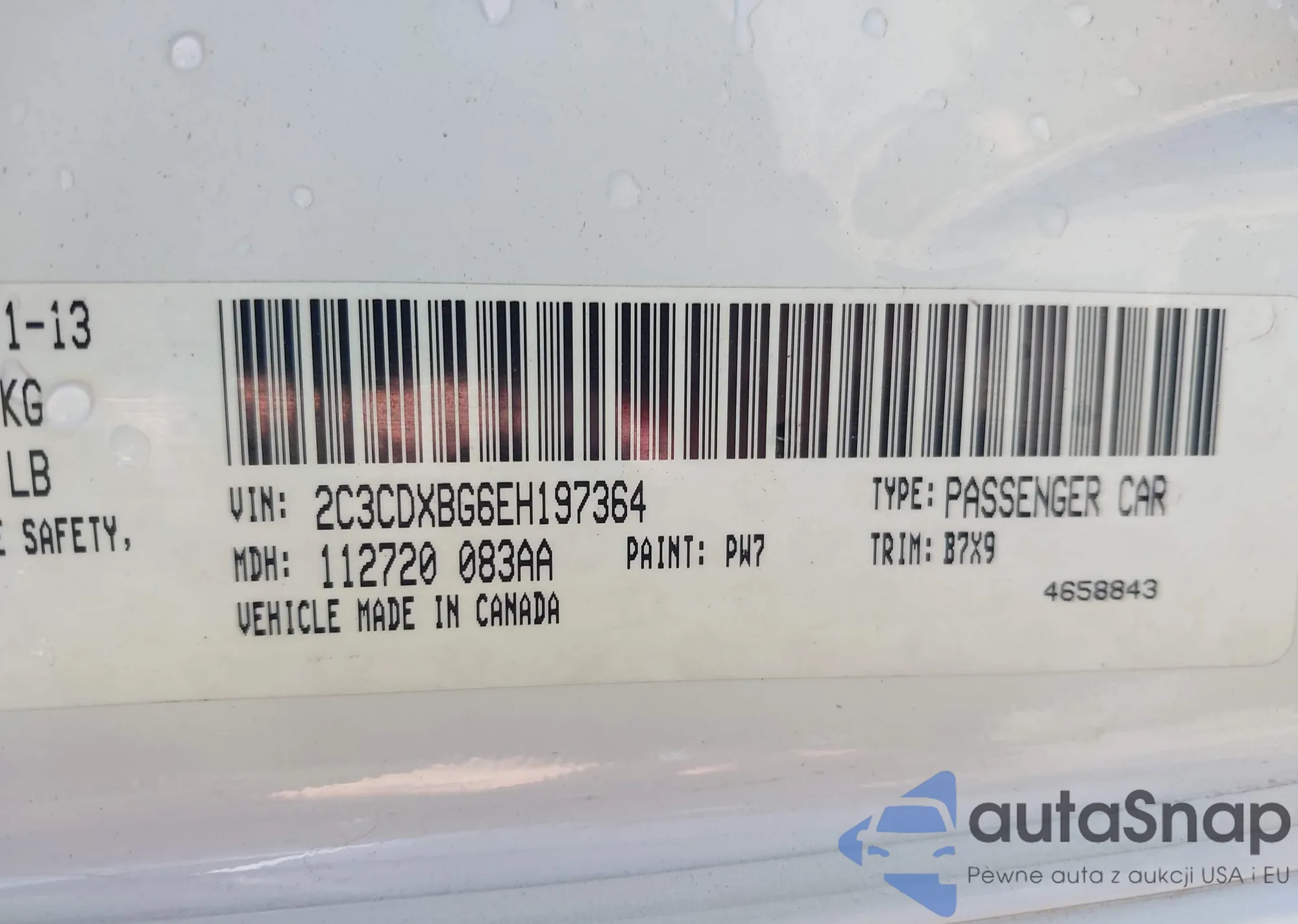LOT: 43096098 VIN: 2C3CDXBG6EH197364