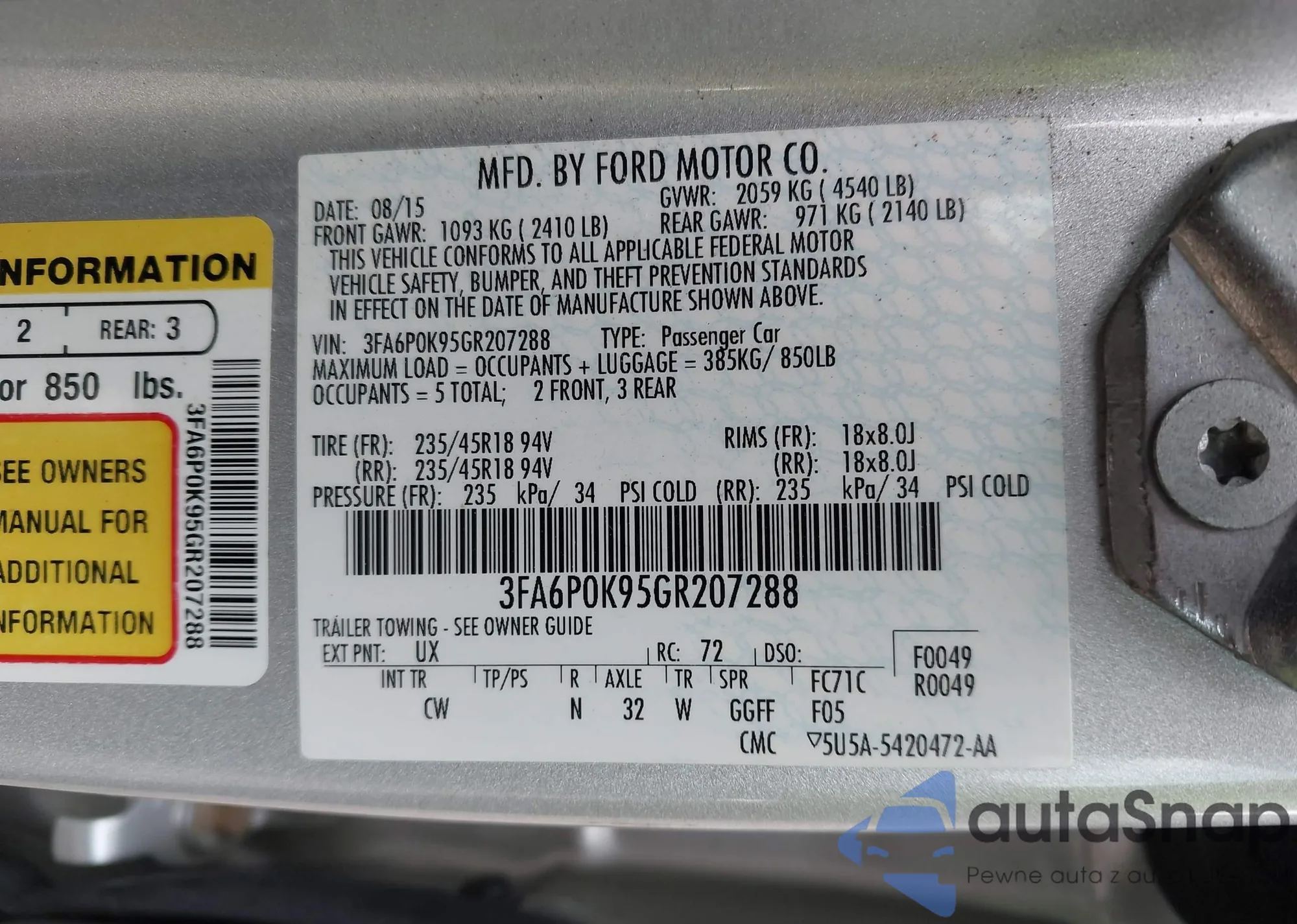 • VIN 3FA6P0H72ER164273