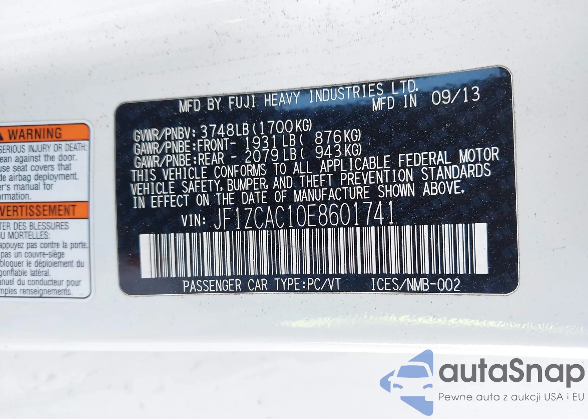 • VIN 2G1FF1E30F9259368