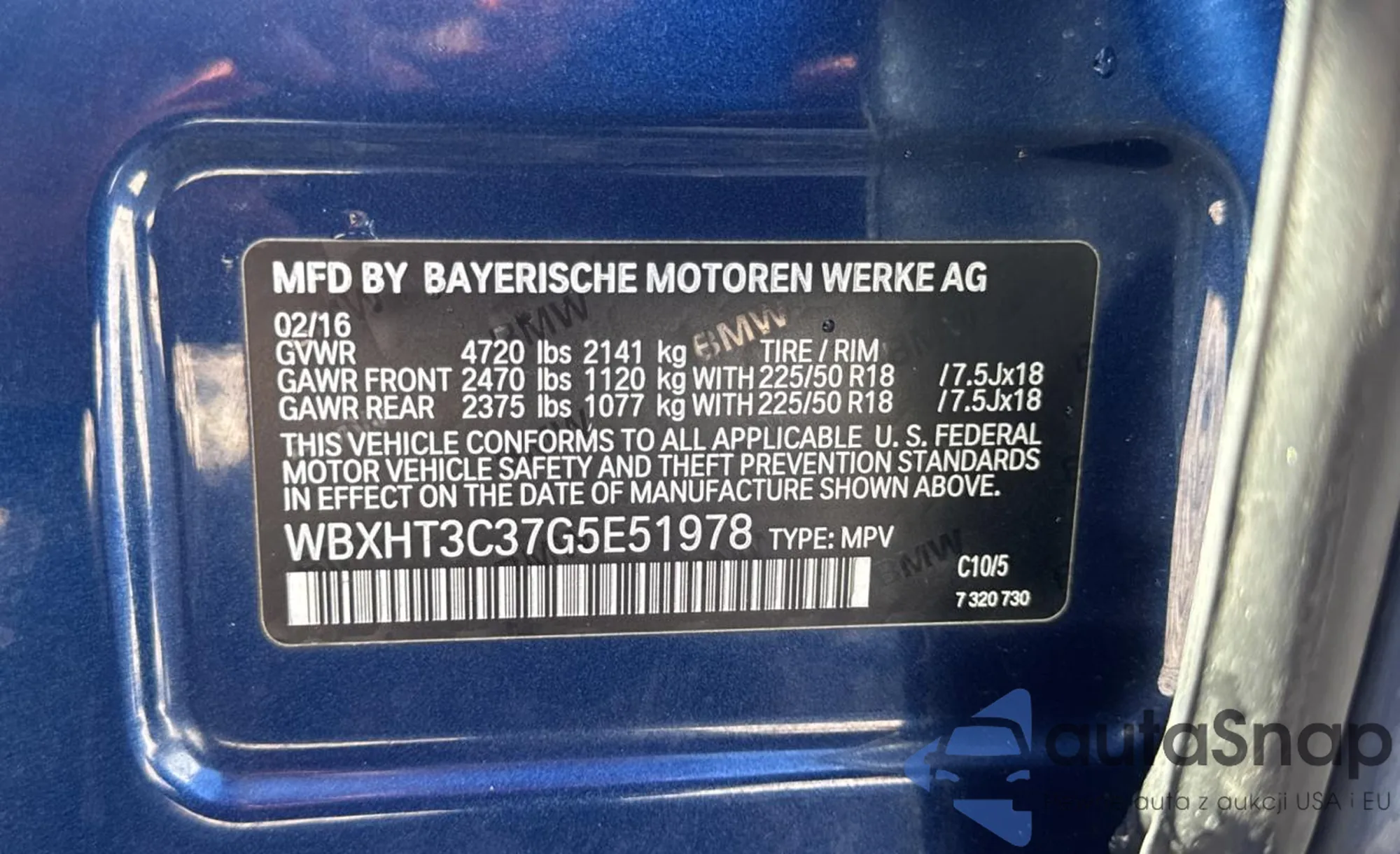 LOT: 82045575 VIN: WBXHT3C37G5E51978