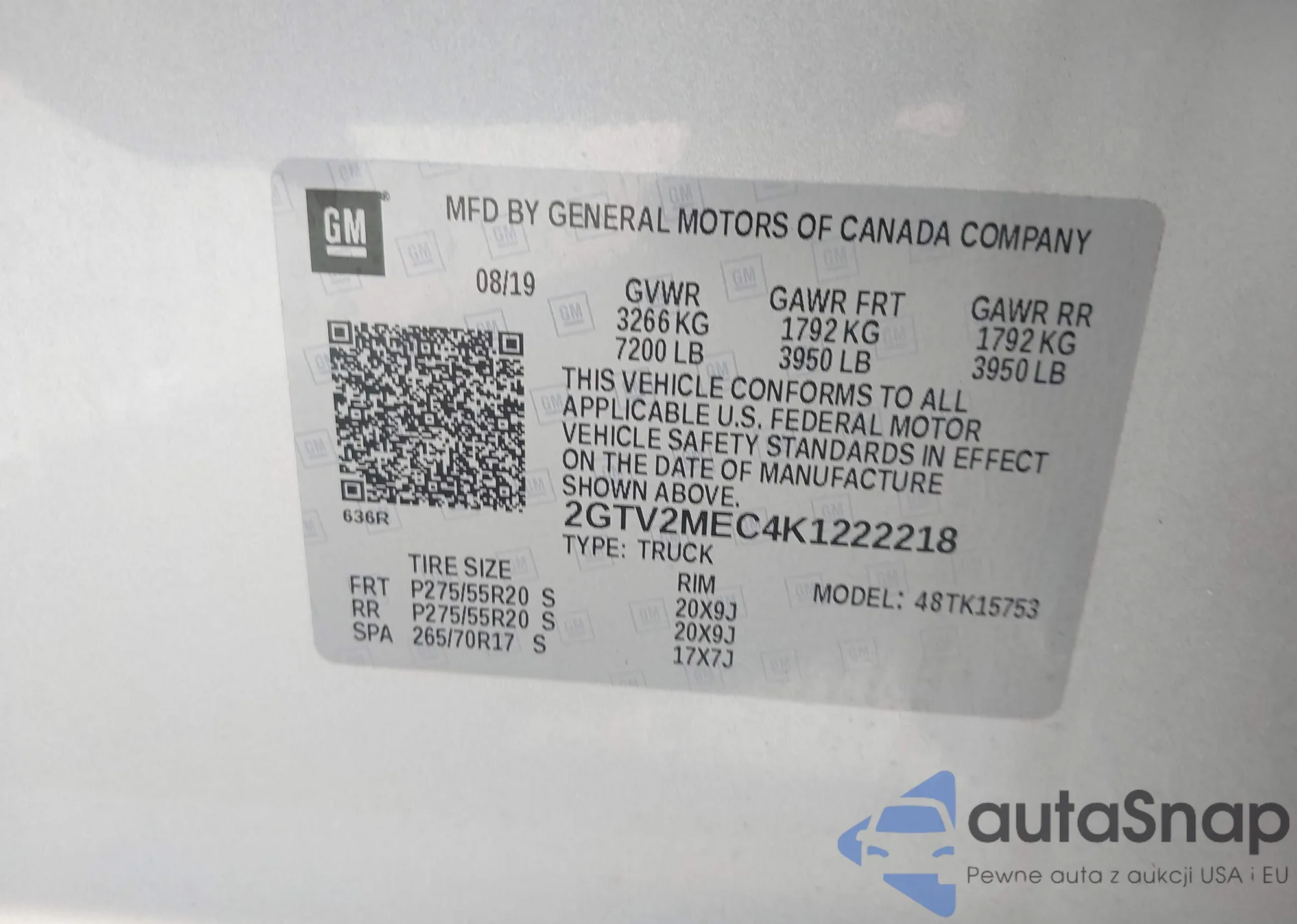 • VIN 2GTV2MEC4K1222218