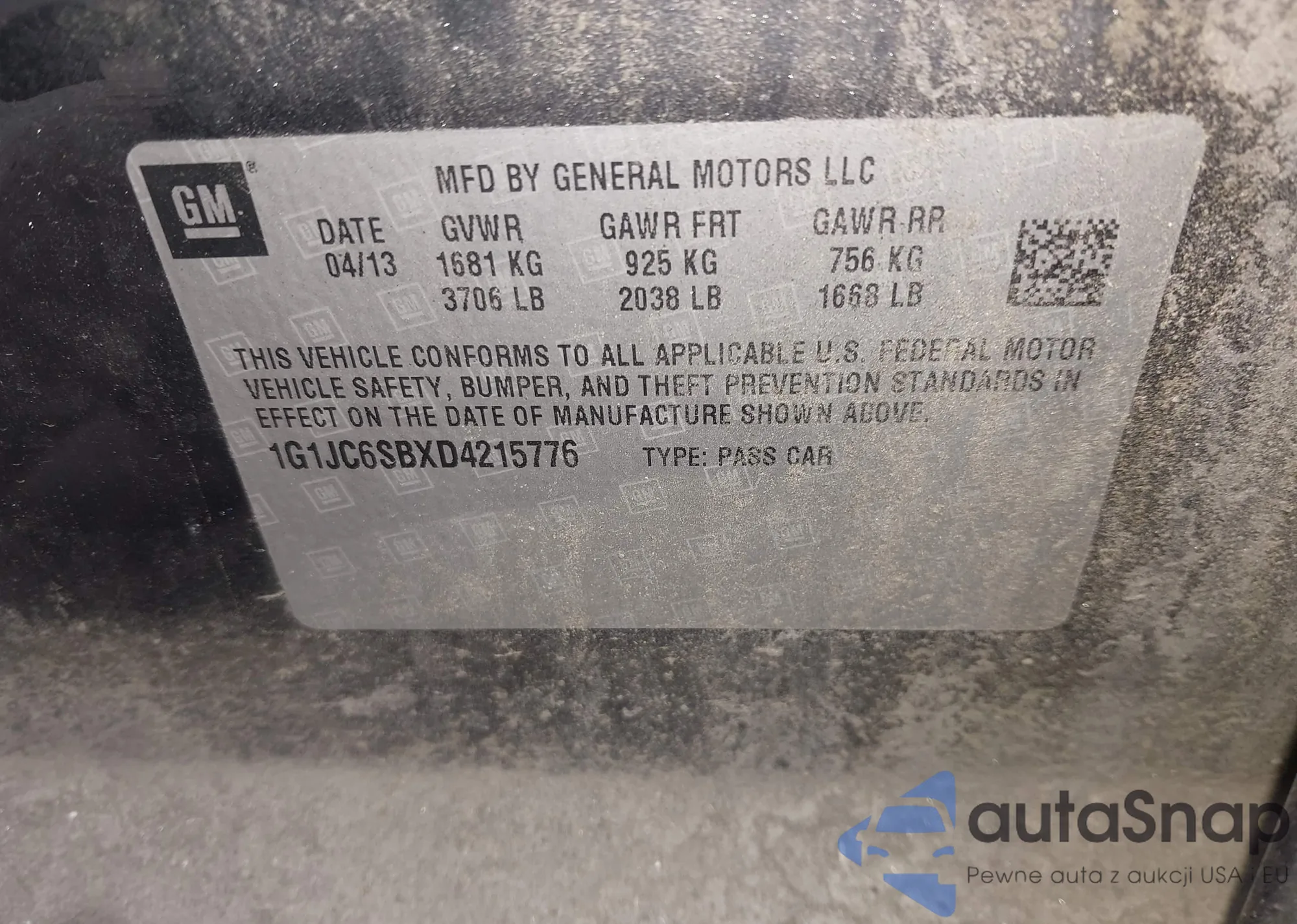 • VIN 1G1JC6SBXD4215776