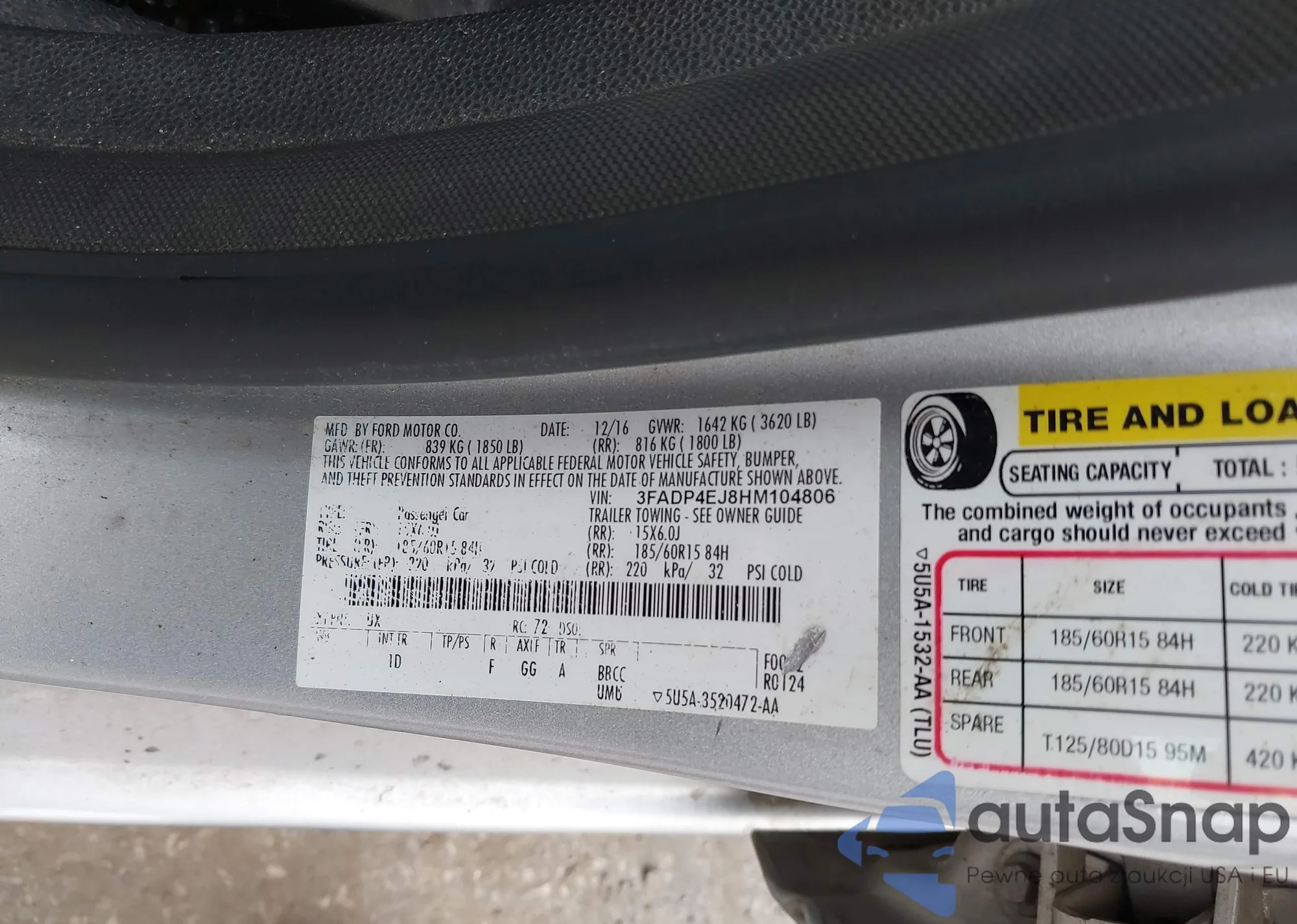 LOT: 42914794 VIN: 3FADP4EJ8HM104806