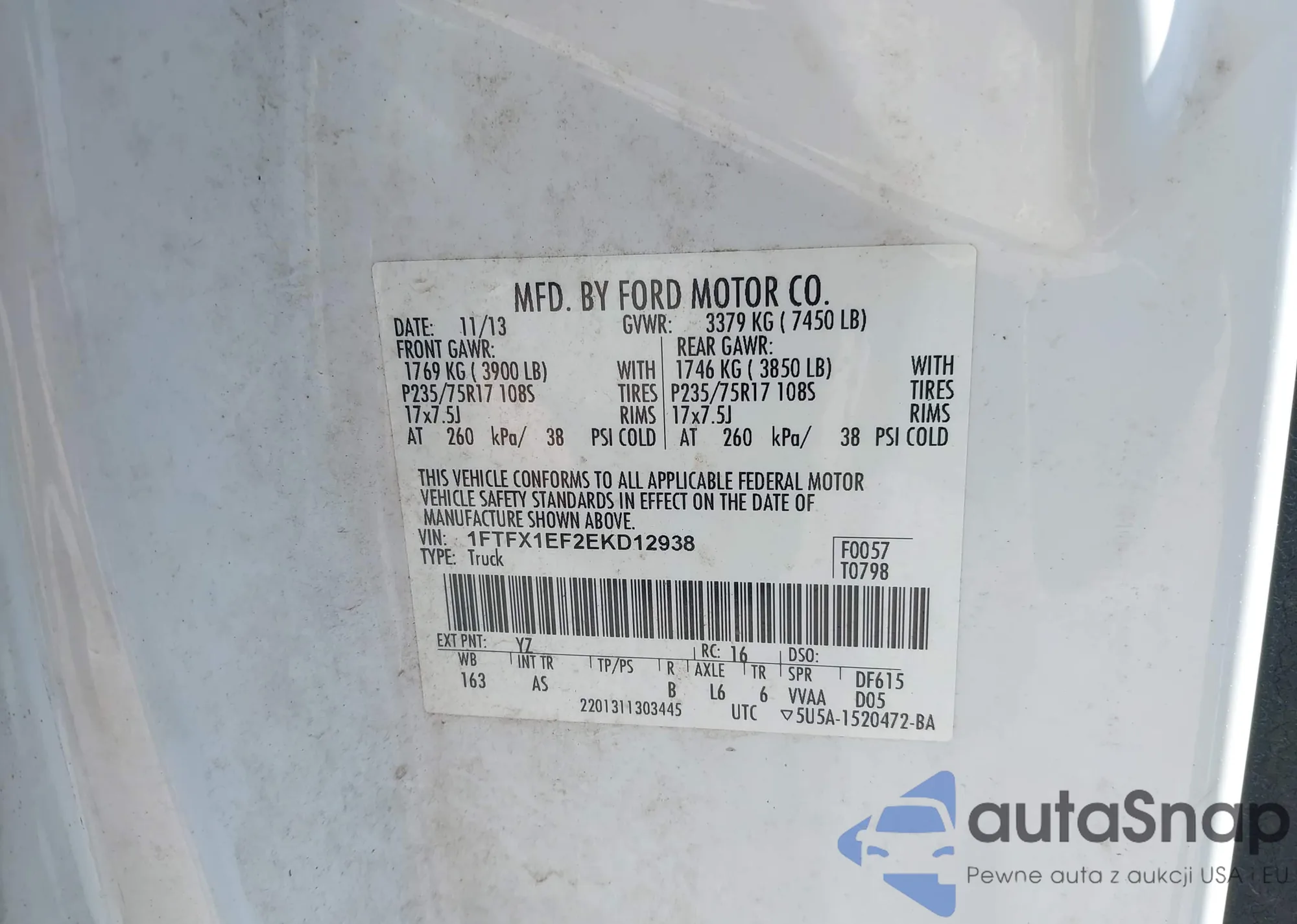 LOT: 43102031 VIN: 1FTFX1EF2EKD12938