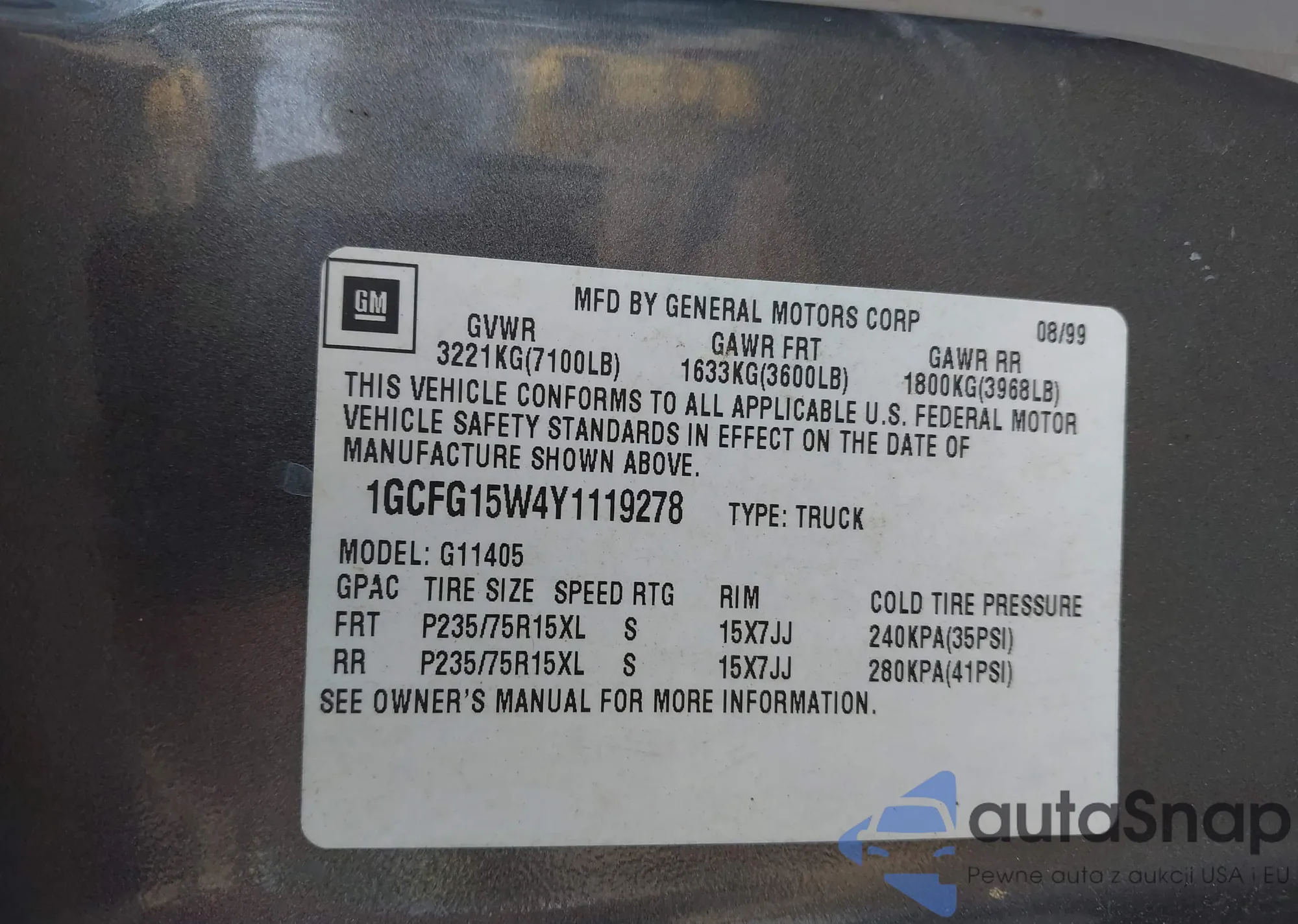 • VIN 1GCFG15W4Y1119278