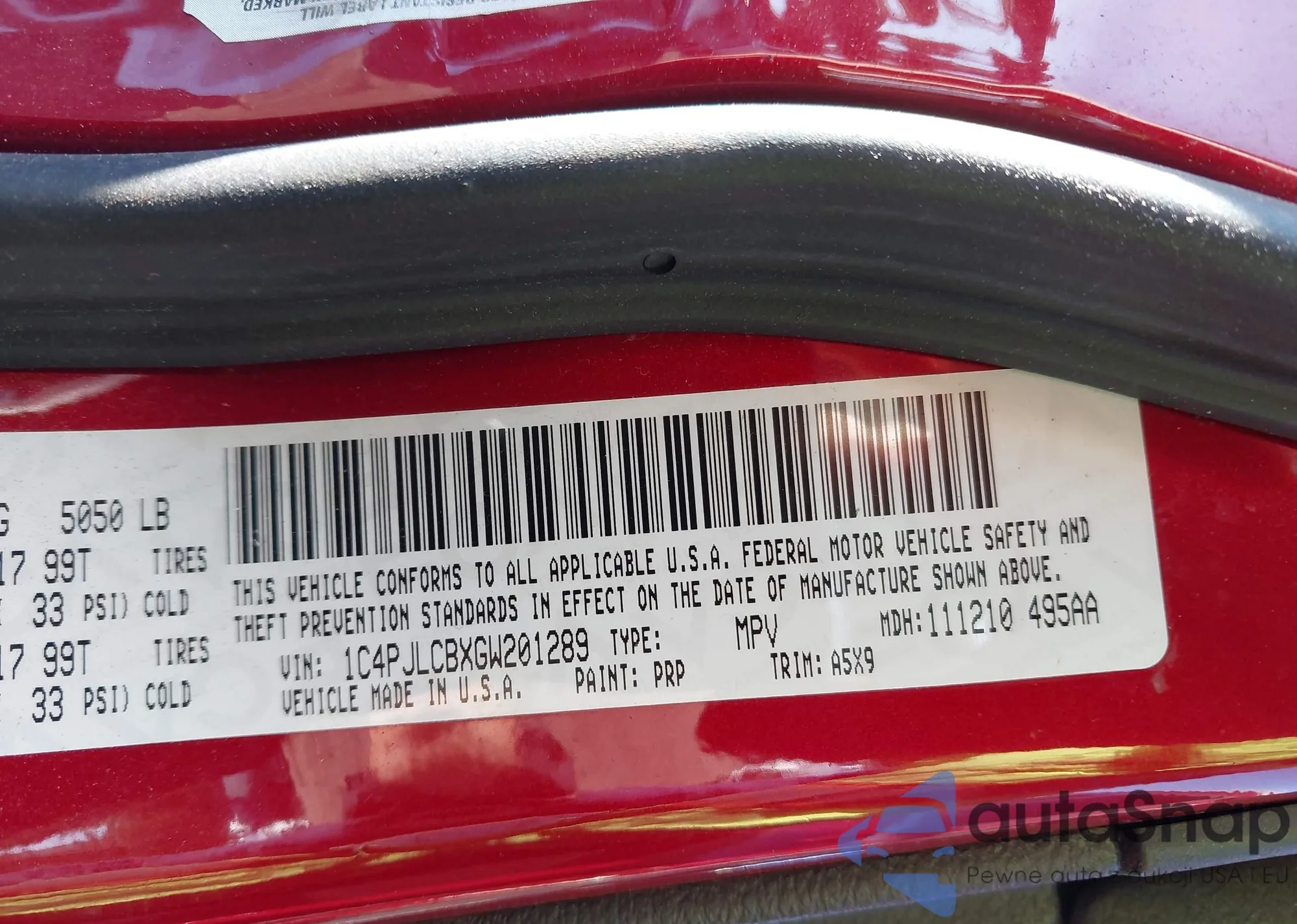 • VIN 1C4PJLCBXGW201289