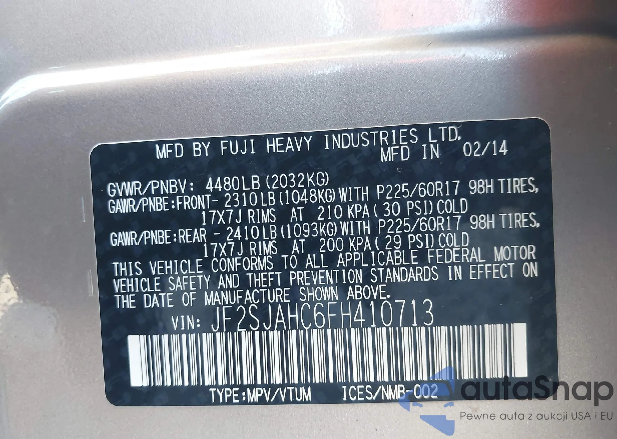 • VIN 3FADP4EJ8HM104806