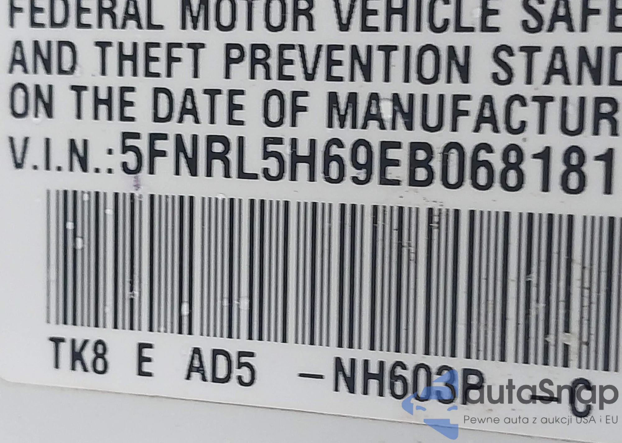 • VIN 5FNRL5H69EB068181