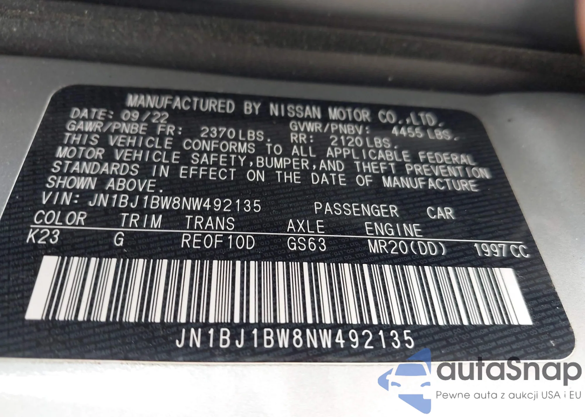 • VIN JN1BJ1BW8NW492135