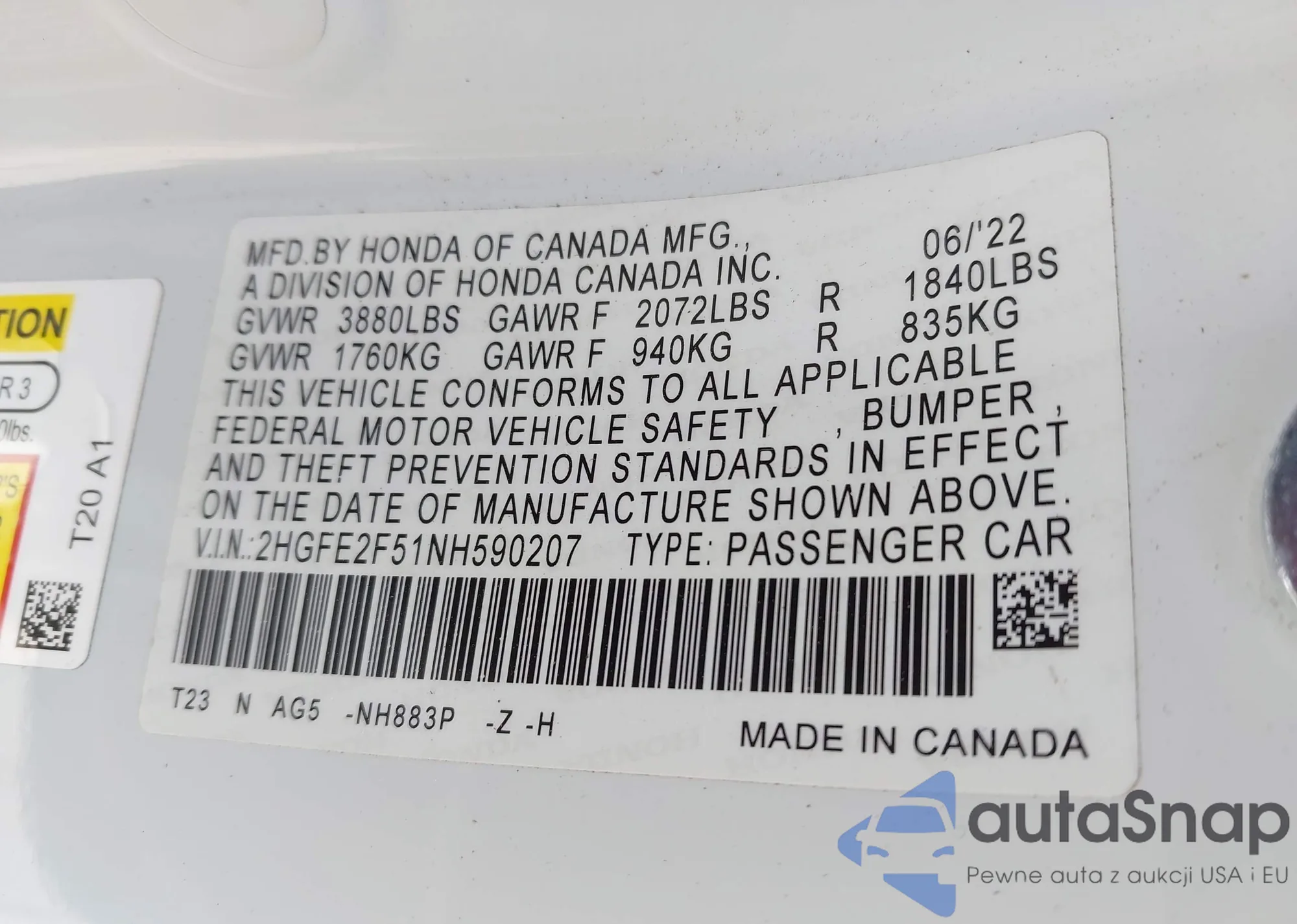 • VIN 2HGFE2F51NH590207