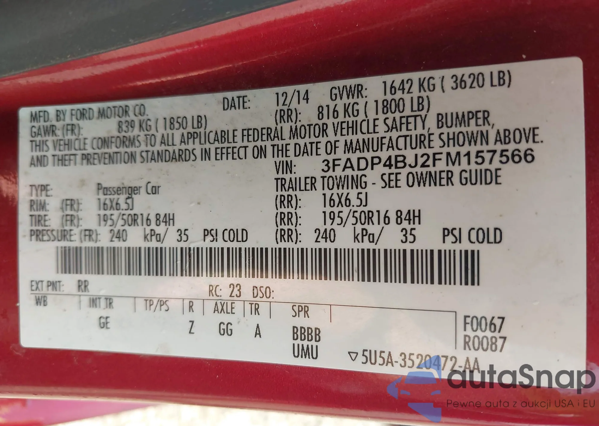 LOT: 43204400 VIN: 1FMSK8DH0NGB08260