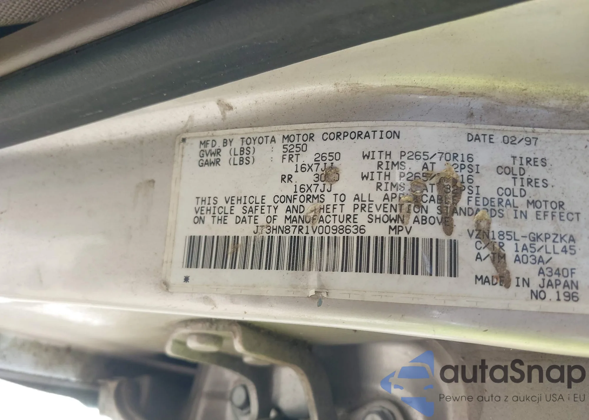 LOT: 43128708 VIN: JT3HN87R1V0098636