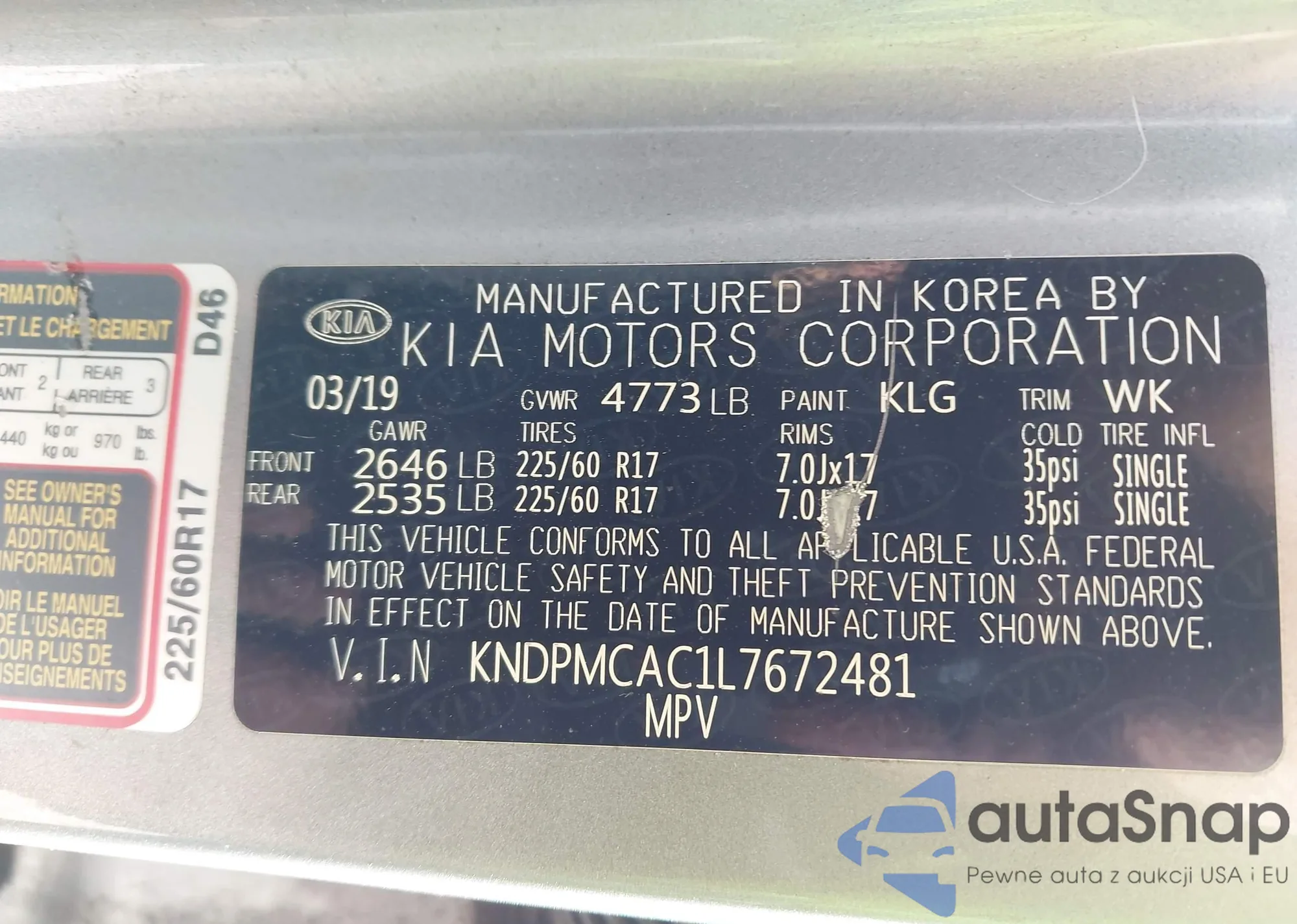 • VIN KNDPMCAC1L7672481