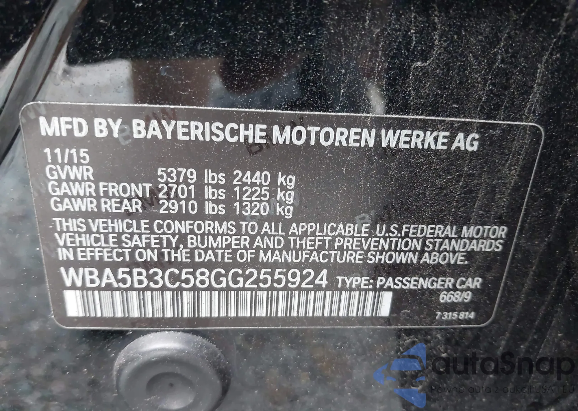 • VIN WBA5B3C58GG255924