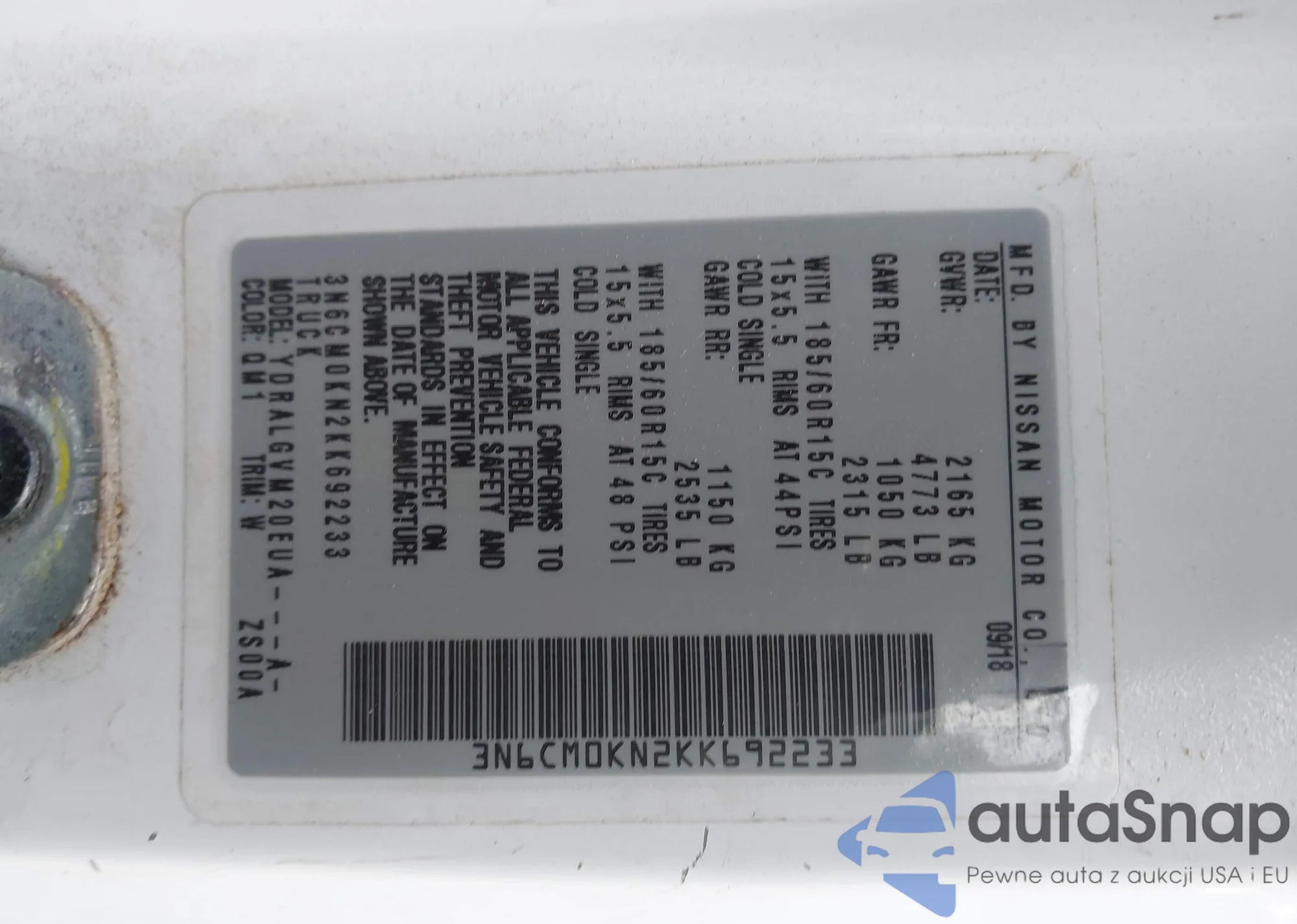 • VIN 3N6CM0KN2KK692233
