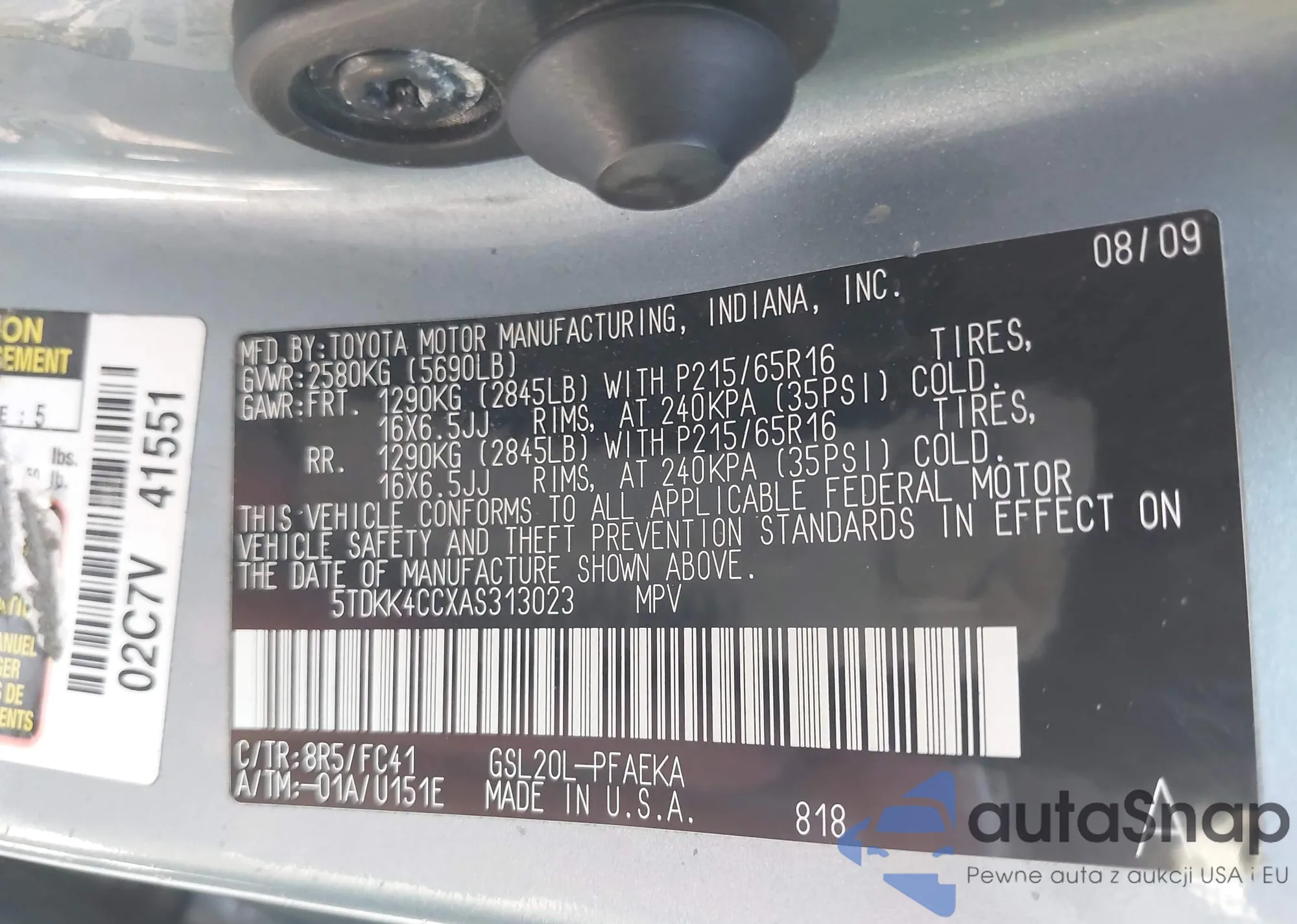 LOT: 43178908 VIN: 5TDKK4CCXAS313023