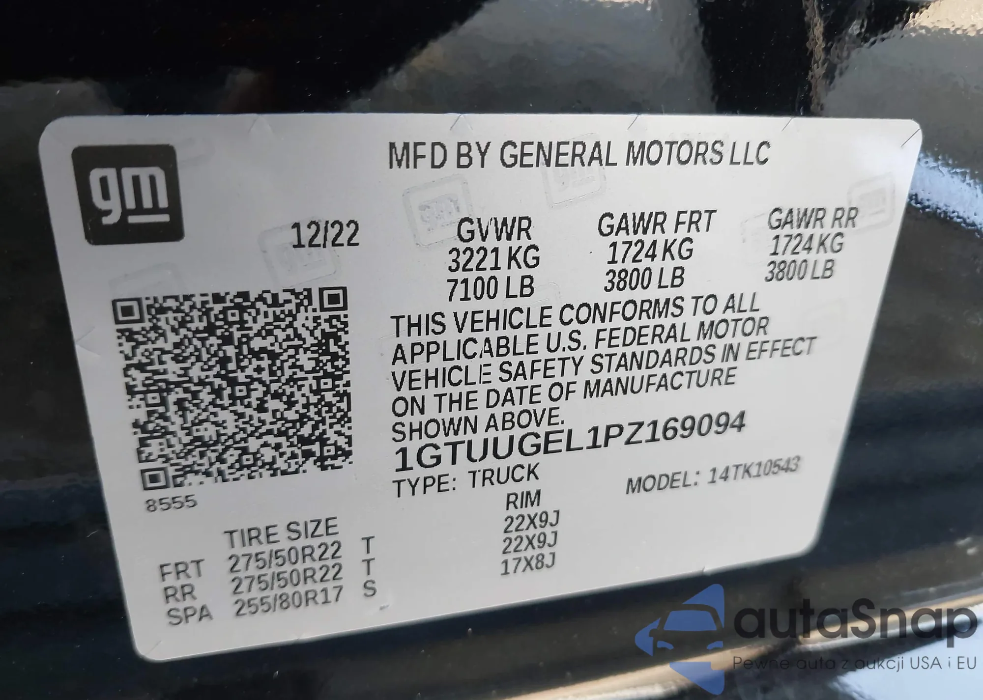 • VIN 1GTUUGEL1PZ169094