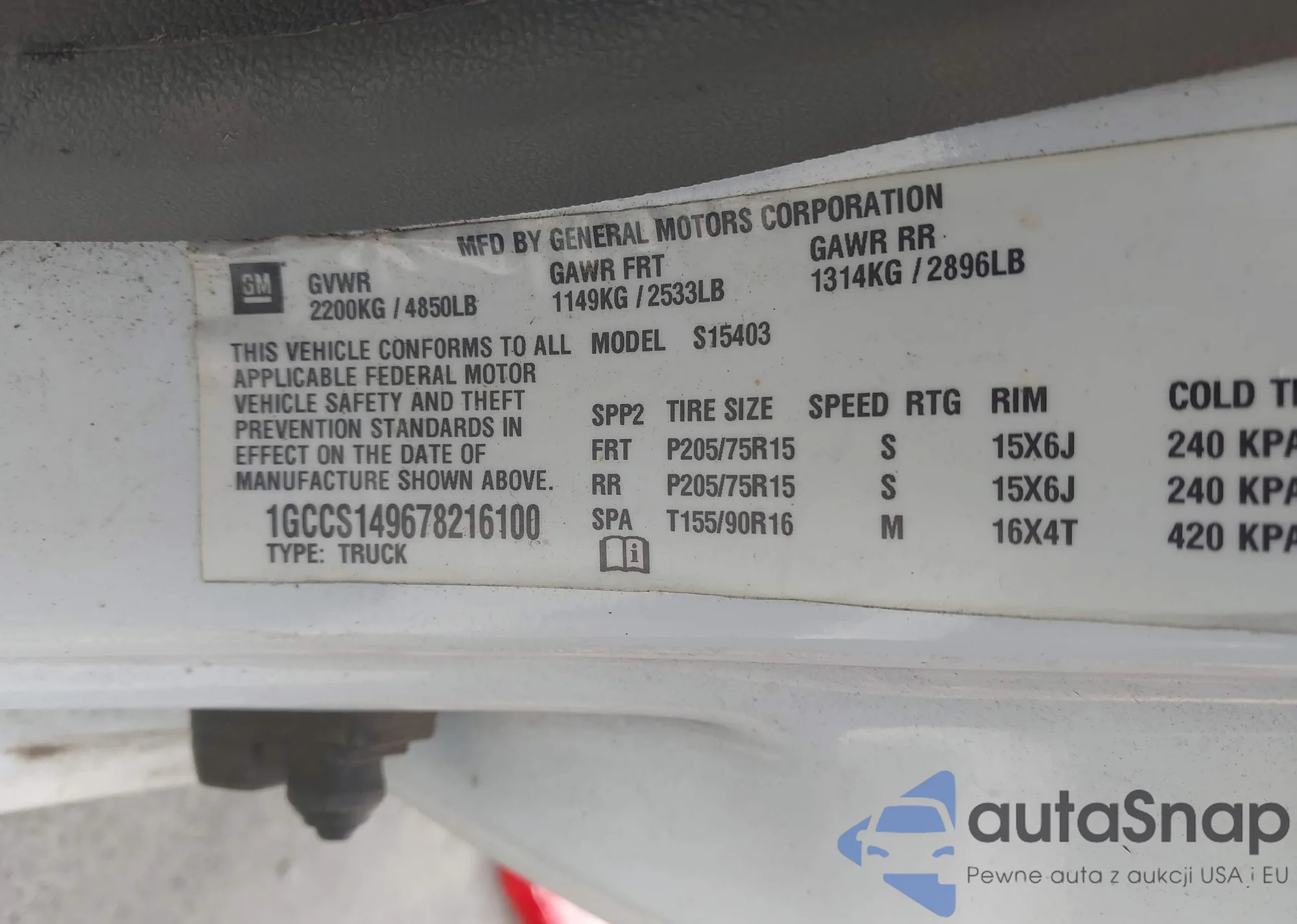 LOT: 43204233 VIN: 1GCCS149678216100