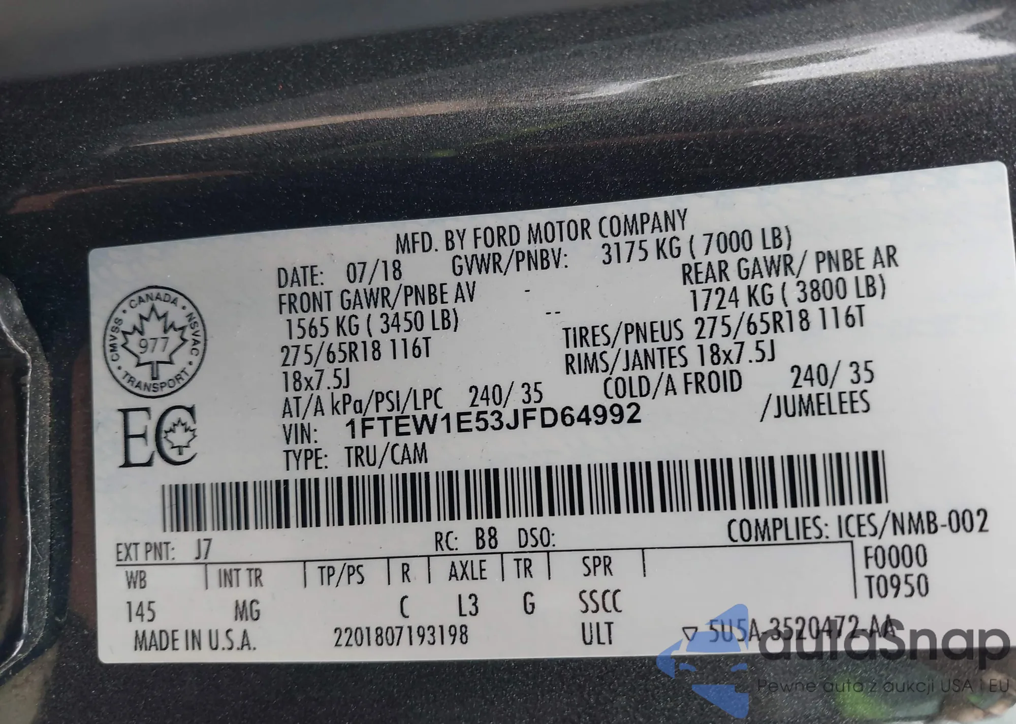 • VIN 1FTEW1E53JFD64992