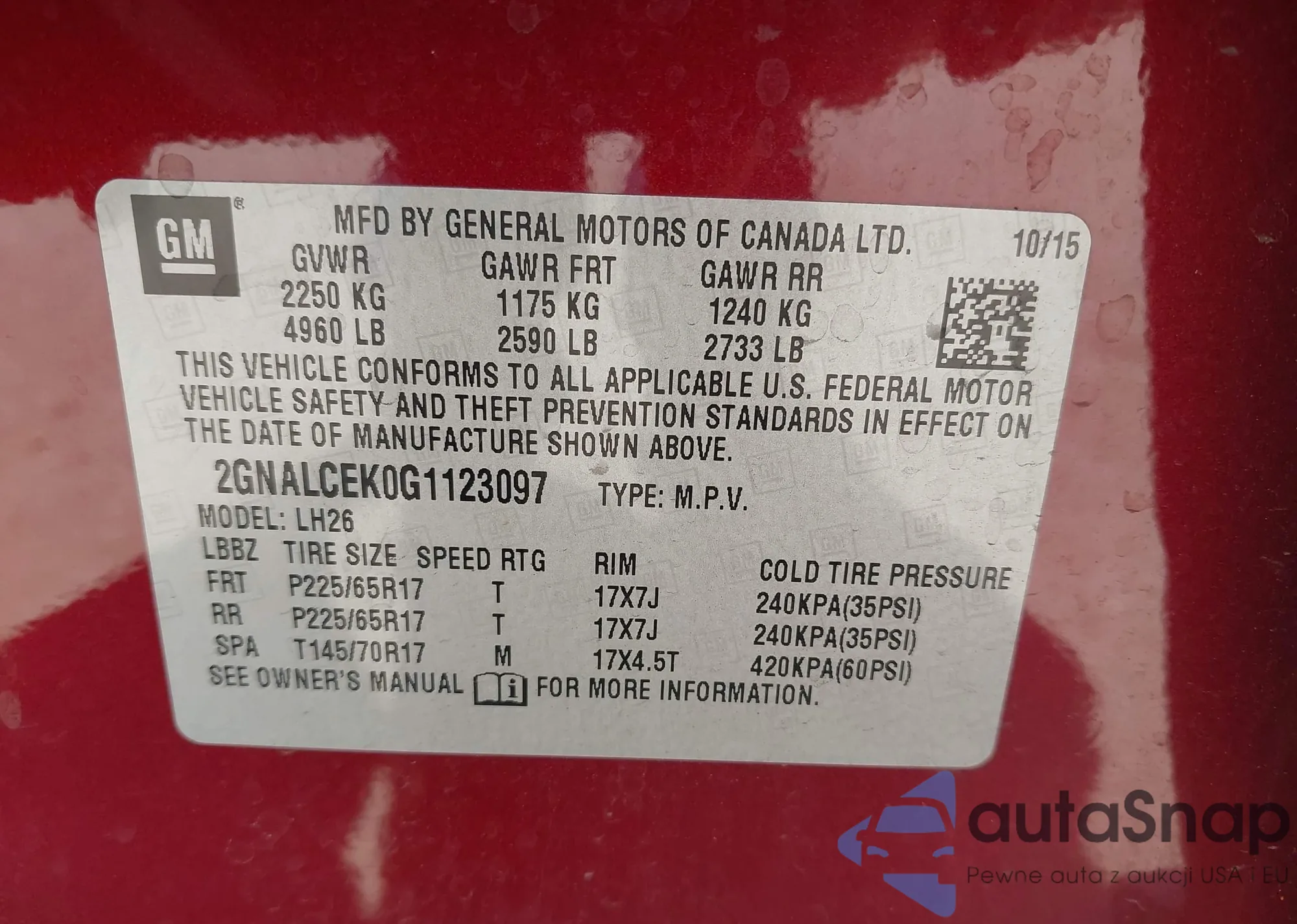 LOT: 43132167 VIN: LRBFZSR49PD220272