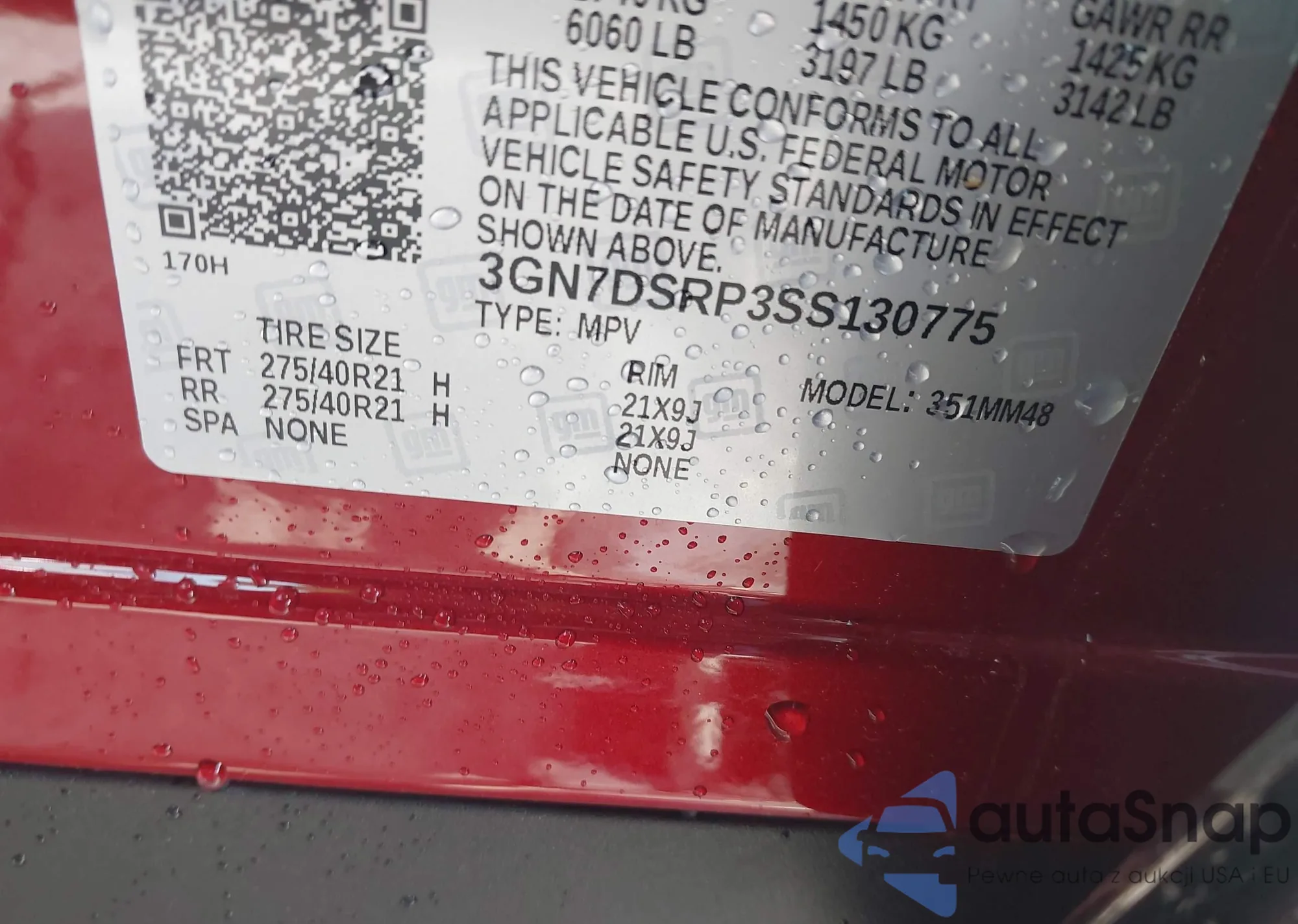 • VIN 3GN7DSRP3SS130775