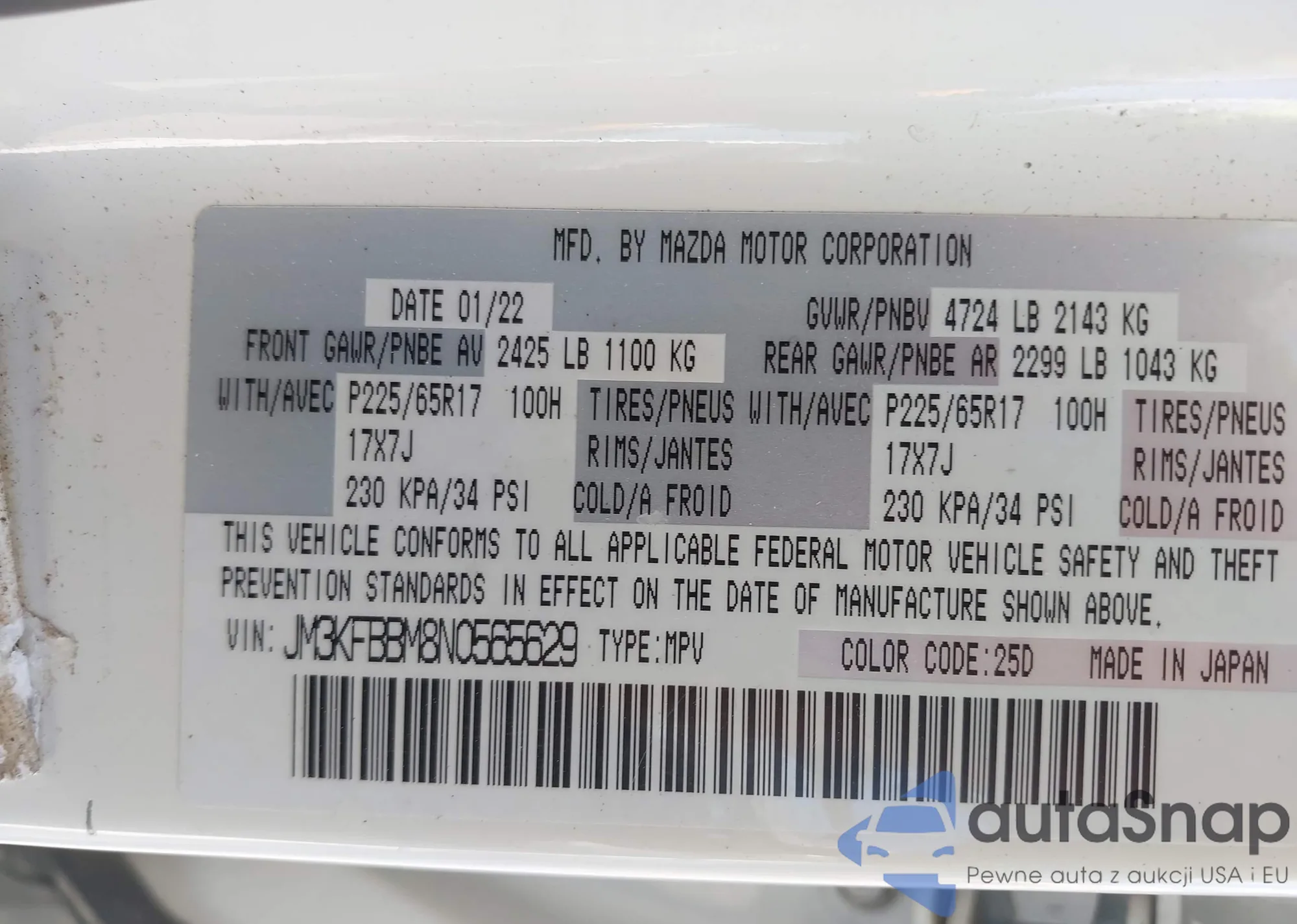 LOT: 42859273 VIN: JM3KFBBM8N0565629