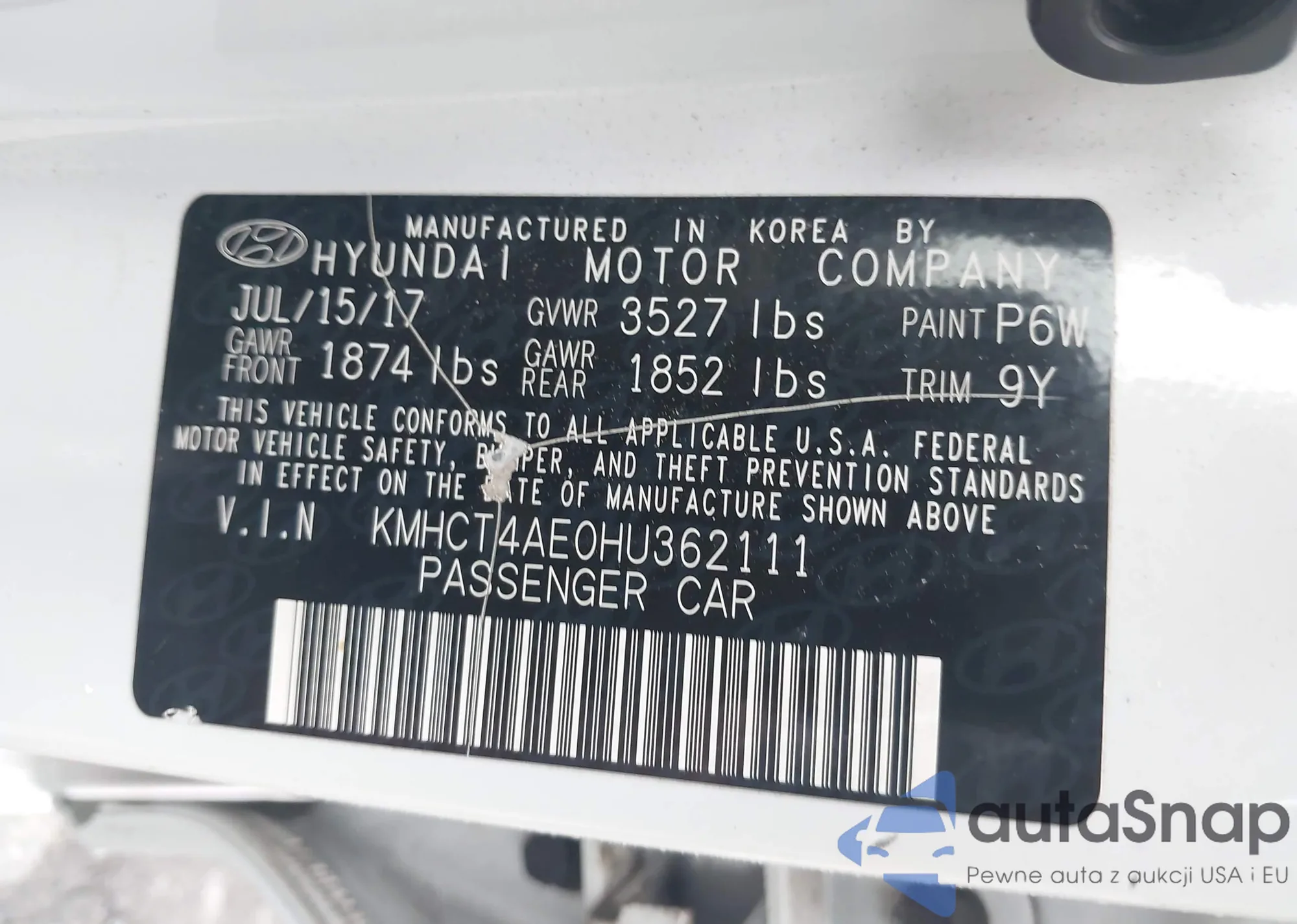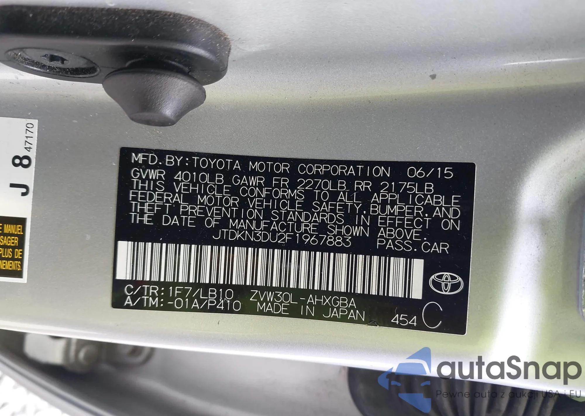 LOT: 43151494 VIN: JTDKN3DU2F1967883