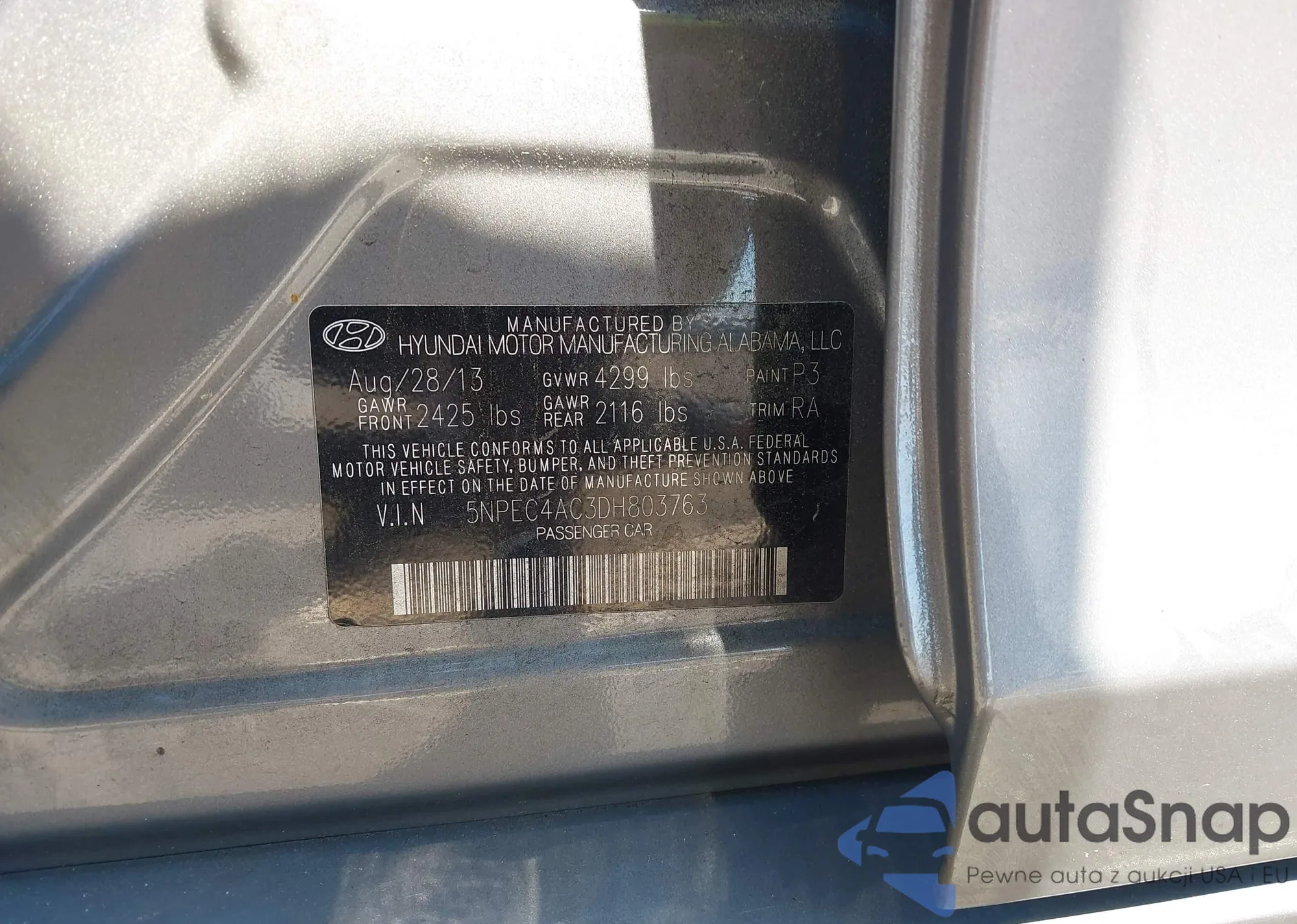 • VIN 5NPEC4AC3DH803763