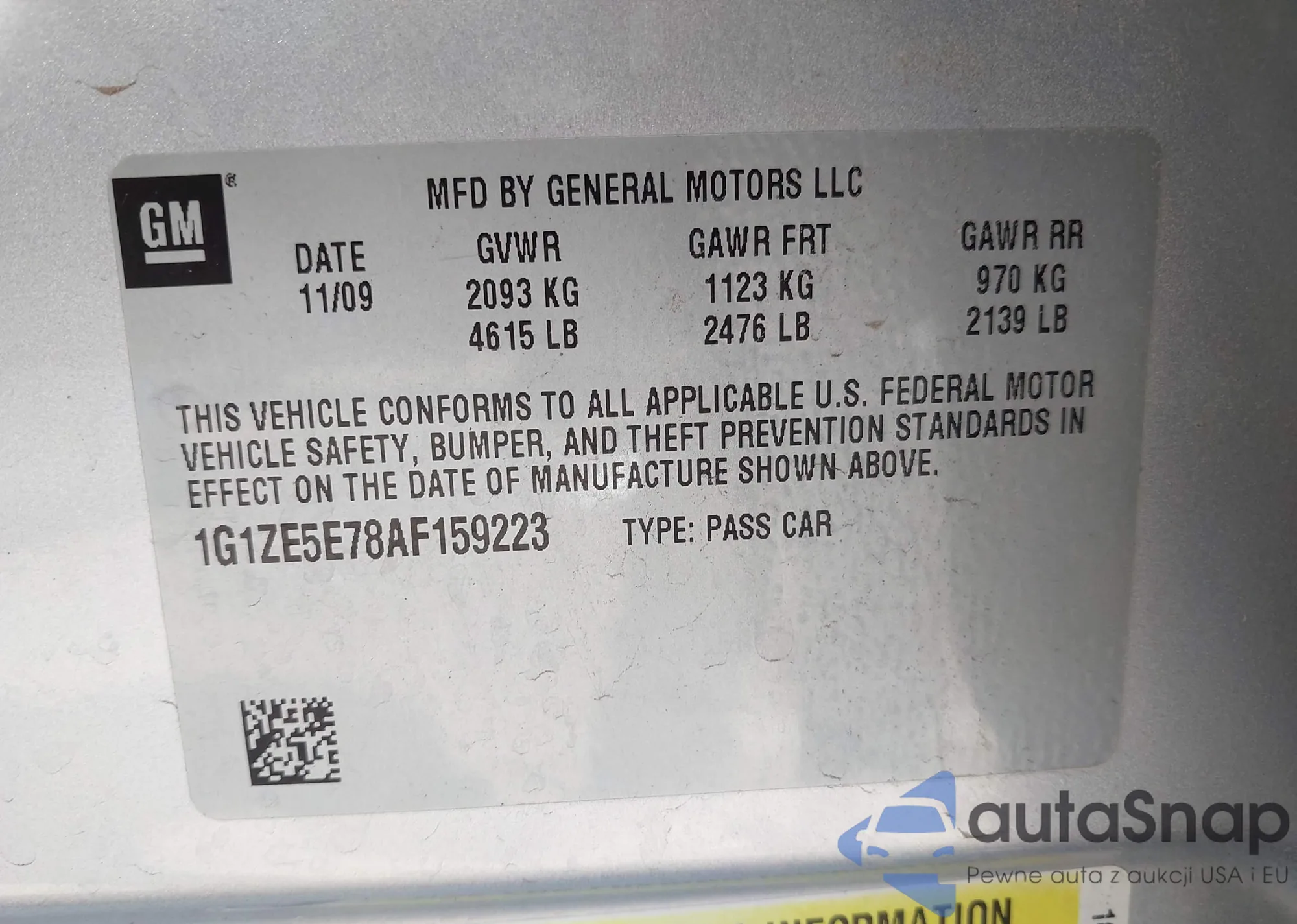 • VIN 1G1ZE5E78AF159223