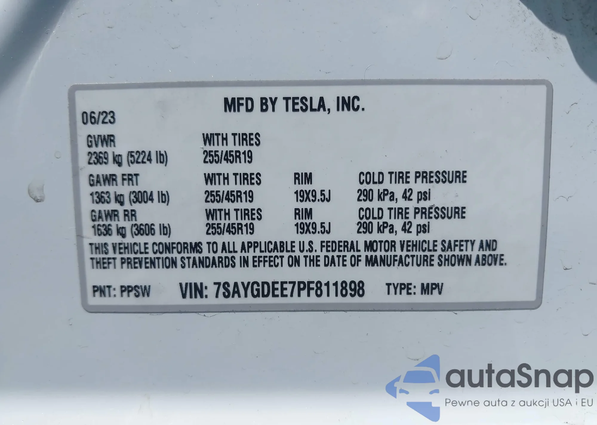 • VIN 7SAYGDEE7PF811898