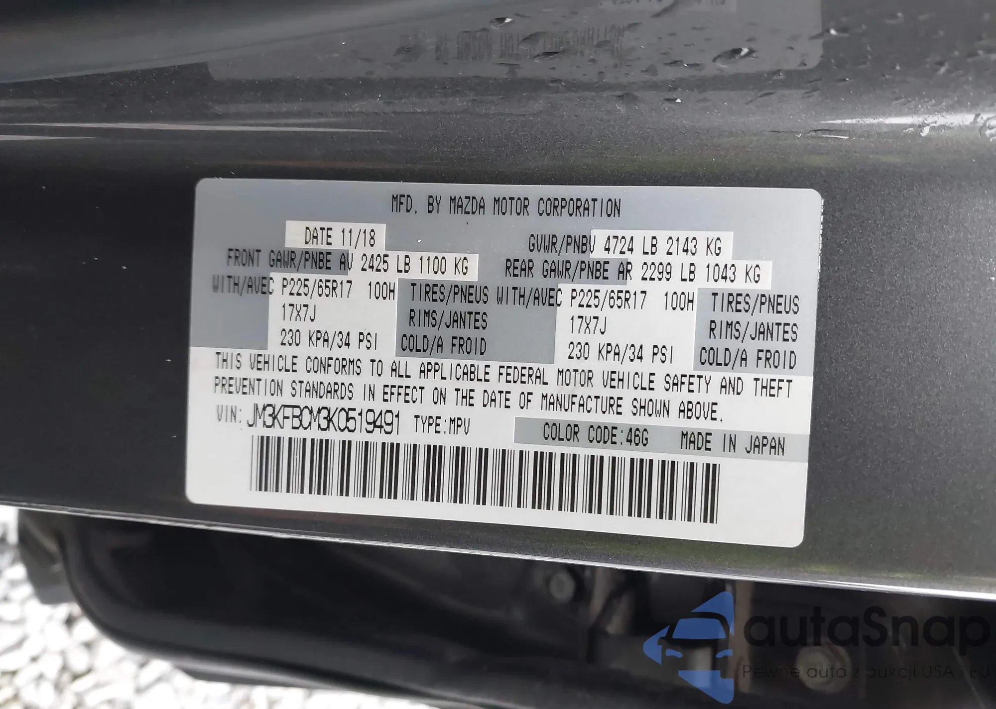 LOT: 42058368 VIN: 3VV2B7AX1JM009541