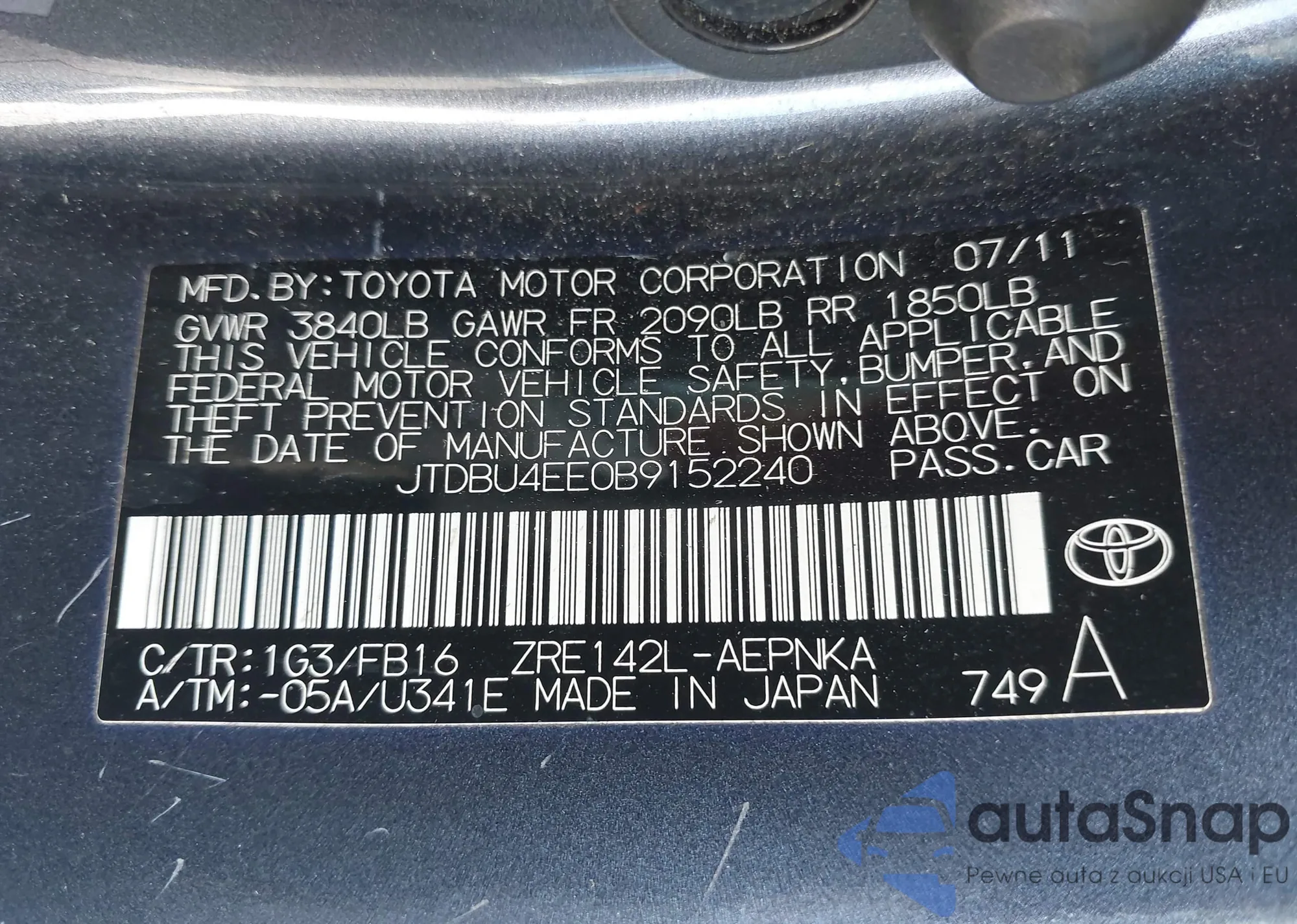 LOT: 43130543 VIN: 5YFEPRAE1LP022082