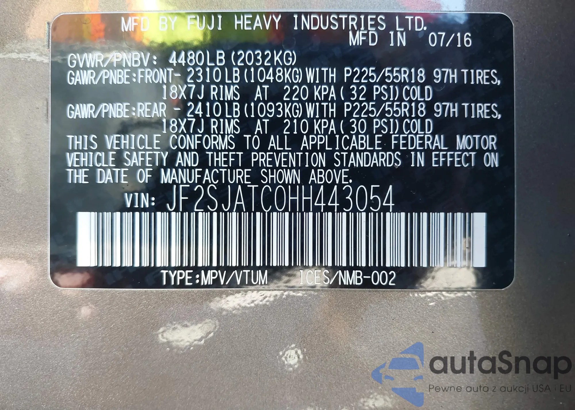 • VIN JF2SJATC0HH443054