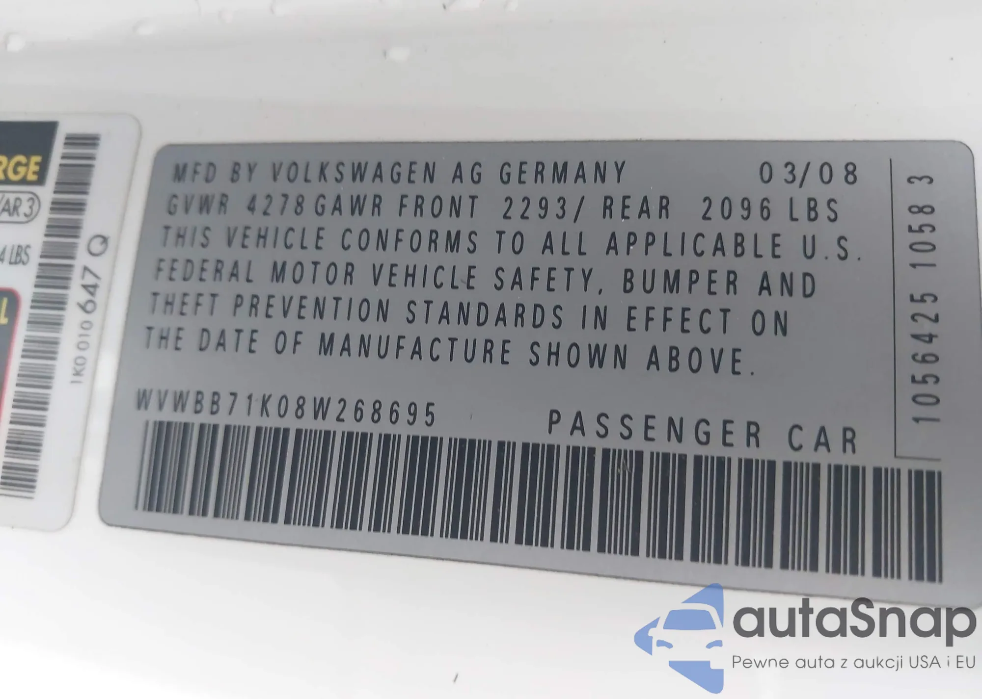 • VIN 3VW7X7BU8SM072306